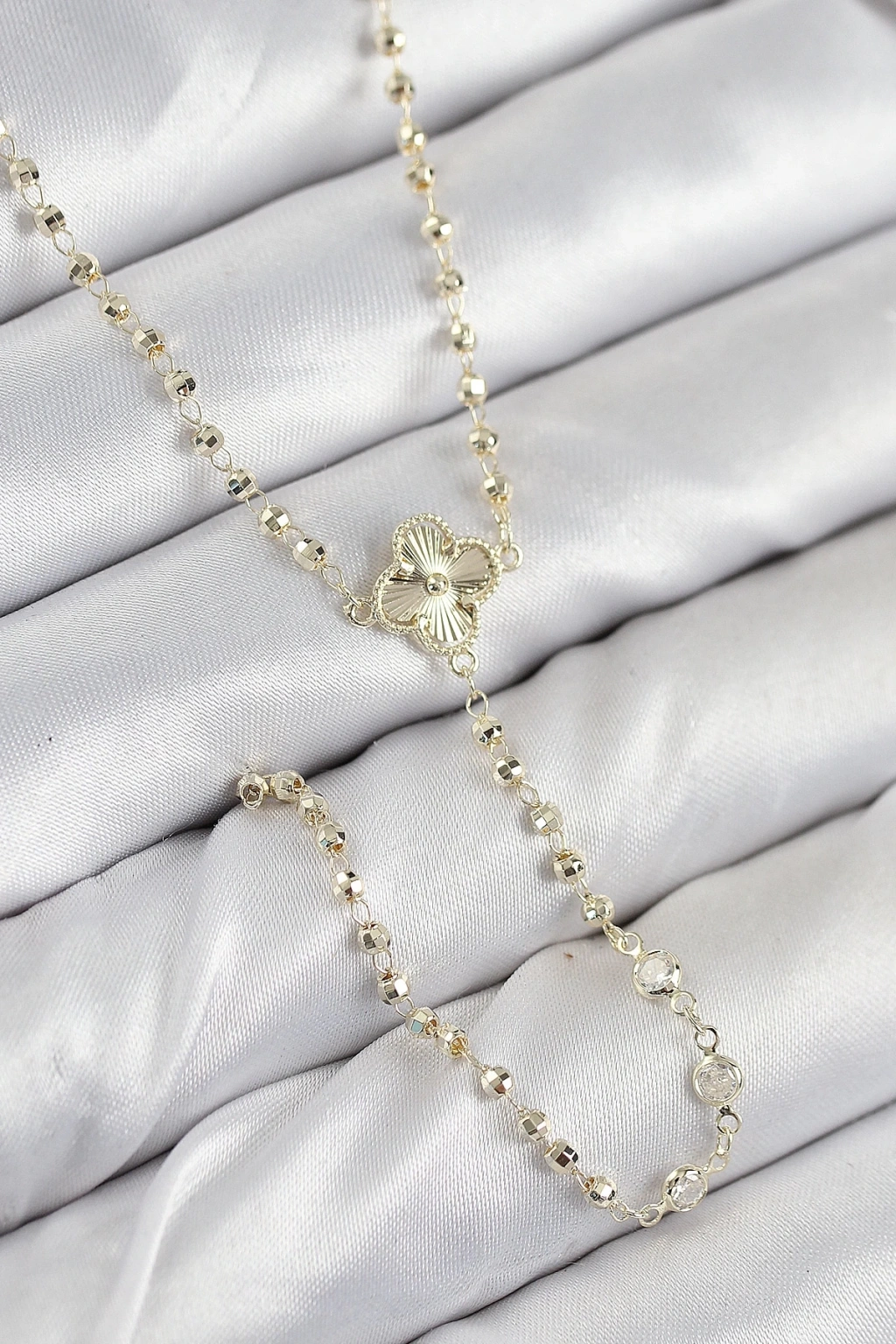 BFS Pirinç Zirkon Taşlı Yonca Model Gold Renk Kadın Y Kolye