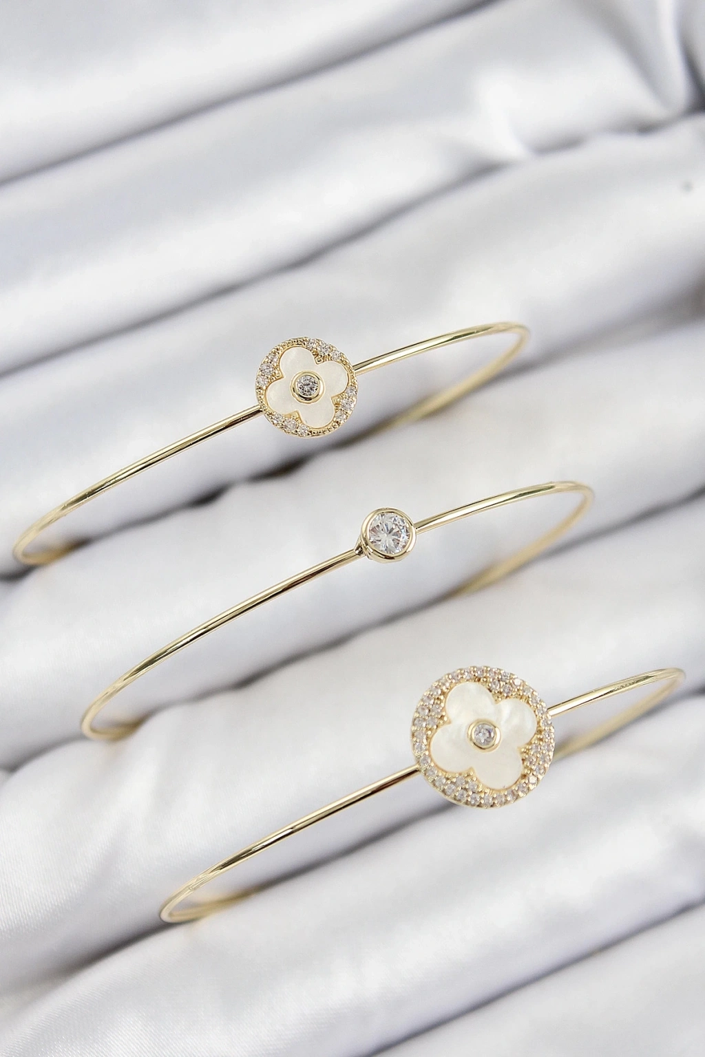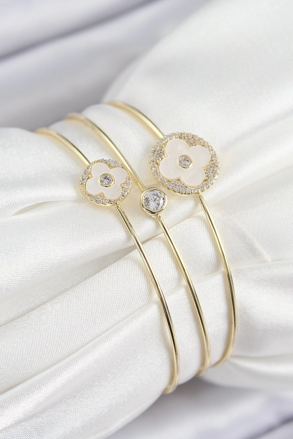 BFS Pirinç Zirkon Taşlı Yonca Model Gold Renk Vip 3'lü Kadın Bileklik