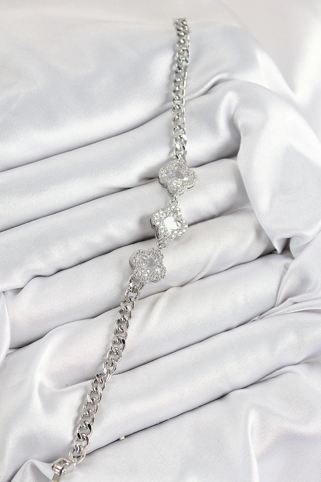 BFS Pirinç Zirkon Taşlı Yonca Model Gümüş Renk Kadın Bileklik