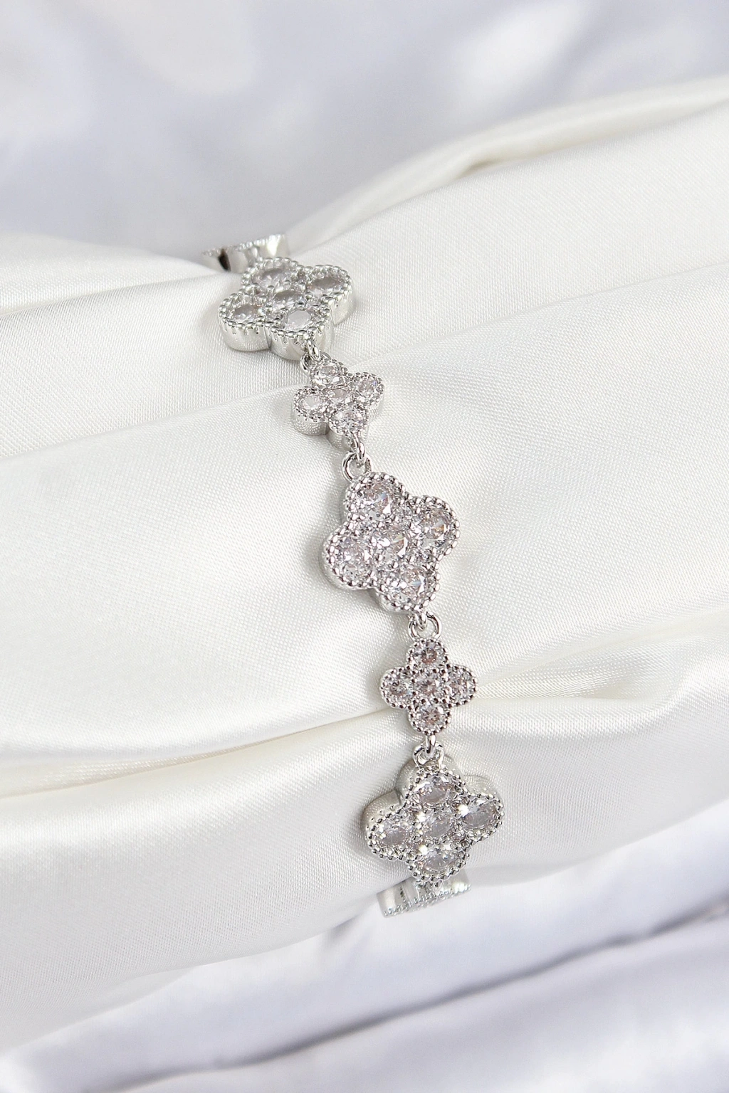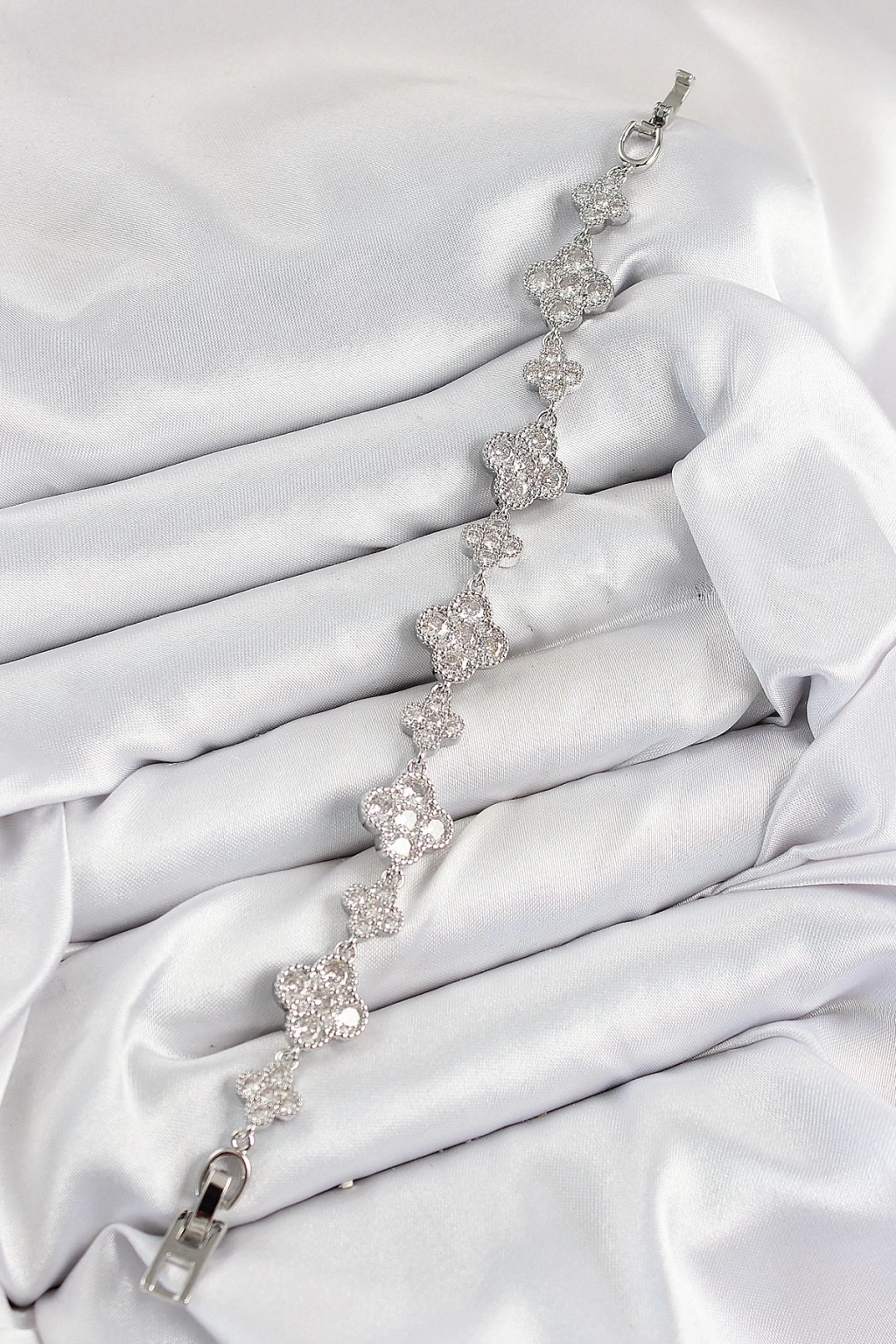 BFS Pirinç Zirkon Taşlı Yonca Model Gümüş Renk VIP Seri Kadın Bileklik