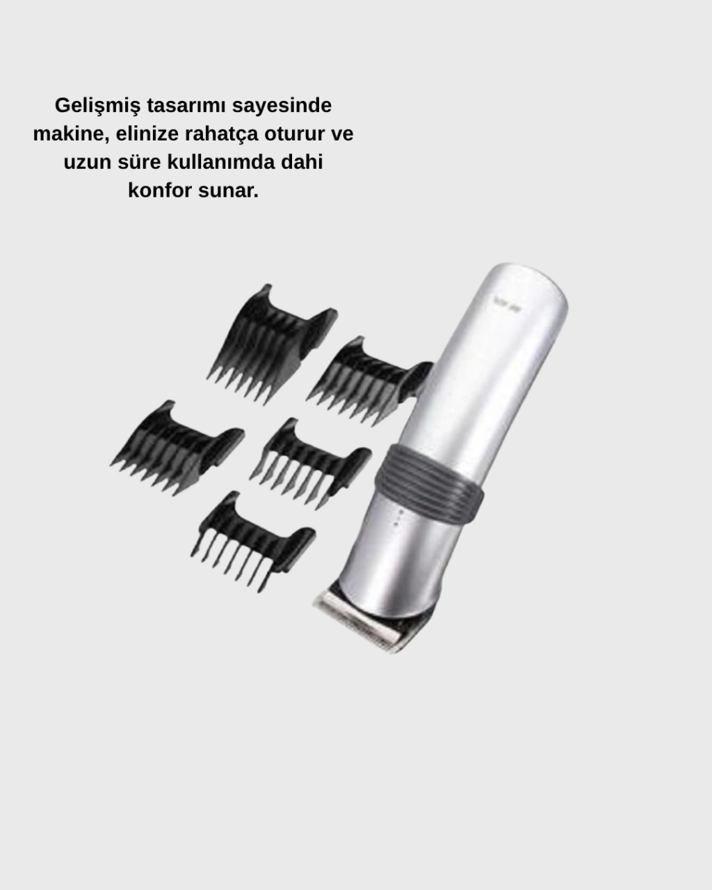 Evde kuaför kalitesinde bakım artık çok kolay!Şarjlı Profesyonel Saç ve Sakal Kesme Makinesi, güçlü motoru, keskin paslanmaz çelik bıçakları ve ergonomik tasarımıyla kusursuz bir tıraş deneyimi sunar.Saç, sakal ve bıyık şekillendirmede maksimum kontrol sağlayarak istediğiniz görünümü kolayca elde etmenize yardımcı olur.Profesyonel düzeyde kesim gücü, yoğun sakal yapısına sahip kullanıcılar için bile kesintisiz performans sunar.Sıfır kesim başlığı ile kısa, net ve keskin tıraş elde ederken; ayarlanabilir tarak başlıklarıyla farklı uzunluklarda şekillendirme yapabilirsiniz.Kaymaz yüzeyli gövde tasarımı, elinize rahatça oturur ve uzun süreli kullanımlarda bile yorgunluk hissini azaltır.Sessiz motor teknolojisi, gürültüsüz bir deneyim sağlar; böylece hem evde hem kuaför ortamında konforlu bir kullanım elde edilir.Tam şarjla 60 dakika kesintisiz kullanım süresi, hızlı şarj özelliğiyle birleşerek günlük bakım rutininizi kolaylaştırır.Dayanıklı paslanmaz çelik bıçaklar, uzun yıllar keskinliğini korur ve her kullanımda aynı performansı verir.Kompakt, taşınabilir ve profesyonel.Bu tıraş makinesiyle her an bakımlı, her zaman şık olun!
