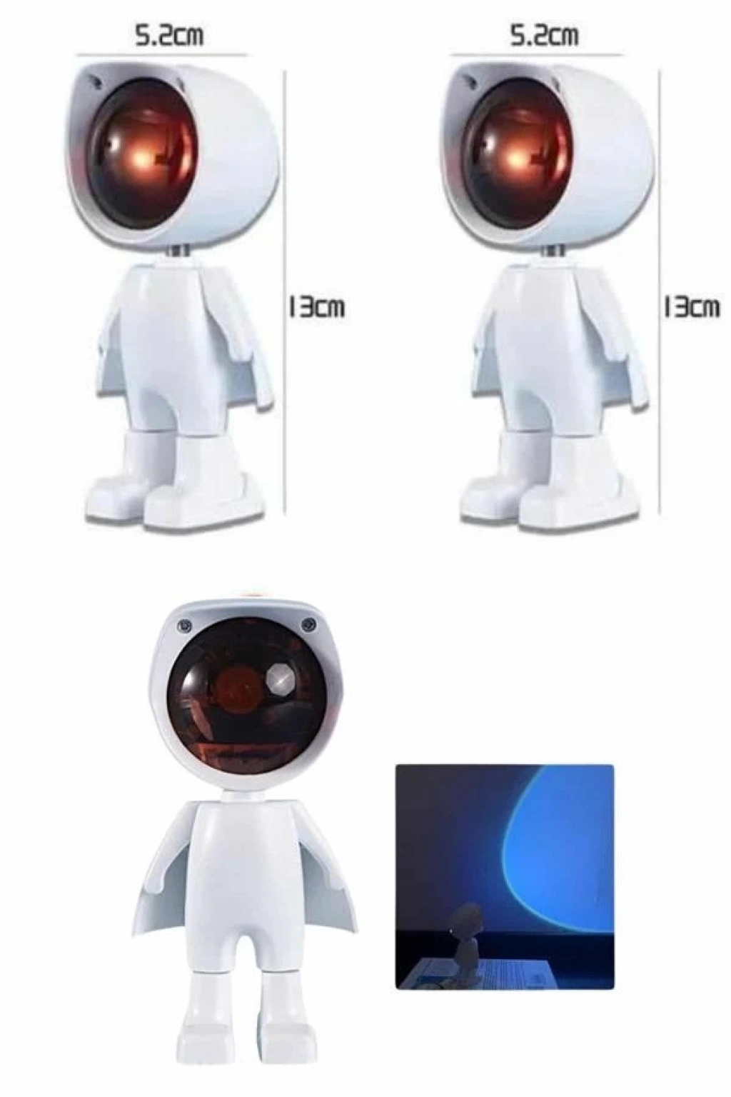 Bu şarjlı gün batımı lambası, sevimli astronot tasarımı ve sıcak renk tonlarıyla bulunduğu ortama hem estetik bir dokunuş hem de huzurlu bir atmosfer kazandırır. Gün batımı efektli ışık yayılımı sayesinde özellikle akşam saatlerinde loş ve dinlendirici bir ortam oluşturmak isteyen kullanıcılar için idealdir. Şık ve modern tasarımı, lambayı yalnızca bir aydınlatma aracı değil, aynı zamanda dekoratif bir obje haline getirir.Lambanın 5 Watt gücündeki LED ışığı, yumuşak ve göz yormayan bir aydınlatma sağlar. Kafasının 360 derece dönebilmesi ve 60 derece yukarı-aşağı hareket edebilmesi sayesinde ışığı istediğiniz yöne kolaylıkla ayarlayabilirsiniz. Bu esneklik, ister duvara gün batımı efekti yansıtmak ister kitap okurken odaklanmış bir ışık elde etmek isteyen kullanıcılar için büyük avantaj sunar.Ürün, USB ile şarj edilebilen dahili bataryası sayesinde prizden bağımsız çalışabilir ve tam şarjla 3-4 saate kadar kesintisiz aydınlatma sağlar. Evde, dış mekânda, seyahatlerde veya fotoğraf çekimlerinde rahatça kullanılabilir. Özellikle sosyal medya içerikleri, ürün çekimleri veya özel günlerde ambiyans yaratmak için oldukça uygundur.Dokunmatik kontrol özelliği, kullanıcı dostu bir deneyim sunarken aynı zamanda ışığın parlaklığını kolayca ayarlayabilmenizi sağlar. Gece lambası olarak da işlev görebilen bu ürün, uyku öncesi rahatlatıcı bir ortam sunar. Taşınabilir yapısı, ürünü istediğiniz her yerde kullanmanıza olanak tanır.Estetik ve işlevselliği bir araya getiren bu gün batımı lambası, ister kişisel kullanım ister dekoratif bir hediye alternatifi olarak her yaştan kullanıcıya hitap eder. Romantik ve sıcak bir atmosfer yaratmak isteyenler için ideal bir seçimdir.