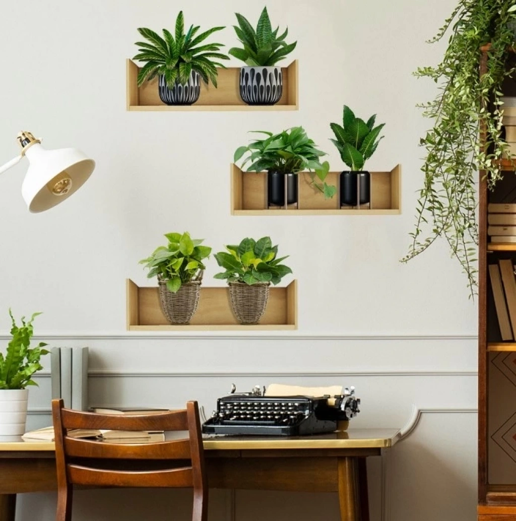 Paket içeriği: 3 sayfa (ruloya şeklinde) : Raflı Bitki Tasarımlı Yapışkanlı Sticker 20*30 cm