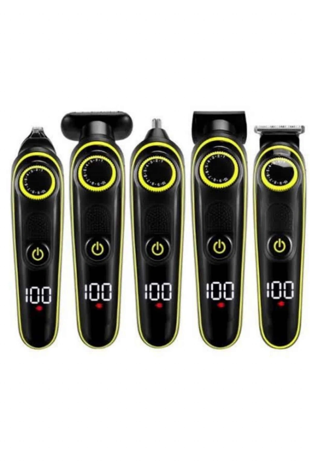 Bu 5'i 1 arada çok fonksiyonlu bakım seti, kişisel bakım rutininizi daha pratik ve etkili hale getiriyor. Saç kesimi, sakal tıraşı, burun ve kulak kılı temizliği, detaylı şekillendirme ve vücut tıraşı gibi birden fazla işlevi tek cihazda sunarak, tam kapsamlı bakım imkanı sağlıyor. Güçlü motoru ve paslanmaz çelik bıçakları ile pürüzsüz bir tıraş deneyimi sunarken, uzun ömürlü ve keskin yapısı sayesinde her kullanımda yüksek performans elde edebilirsiniz. Kablosuz ve şarjlı kullanımı sayesinde hareket özgürlüğü tanır; tam dolu batarya ile uzun süreli kullanım imkanı sunar. Farklı kesim uzunlukları için ayarlanabilir tarak başlıkları mevcuttur; bu sayede kişisel stilinize uygun şekillendirmeyi zahmetsizce gerçekleştirebilirsiniz. Ergonomik tutuşa sahip şık ve modern tasarımı, hem kullanım kolaylığı sağlar hem de banyo alanınıza estetik bir katkı sunar. Üzerindeki LED gösterge, pil seviyesini anlık olarak takip etmenize olanak tanırken, düşük sesli çalışması ile her ortamda konforlu bir kullanım deneyimi yaşatır. Suya dayanıklı başlıkları ve çıkarılabilir bıçakları sayesinde temizlik işlemleri oldukça kolaydır; hijyenik kullanım için yalnızca düzenli olarak yıkamanız yeterlidir.