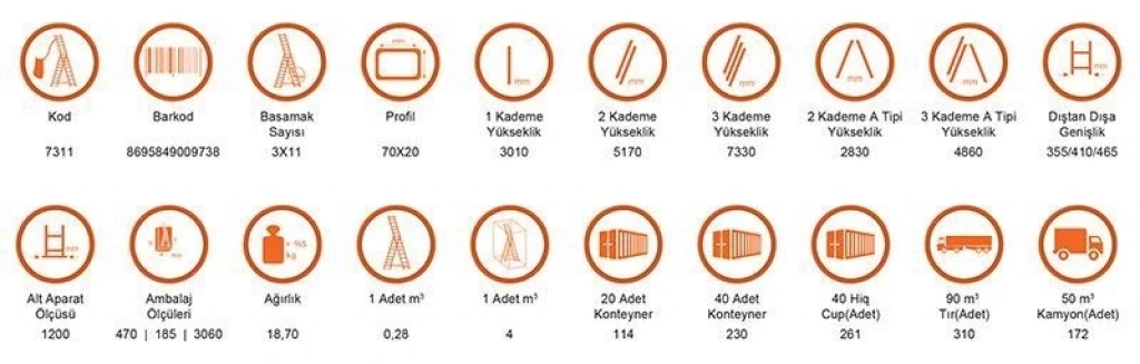 Mey İthalat® Saraylı 3x11 A Tipi Sürgülü Merdiven 9,03 Metre