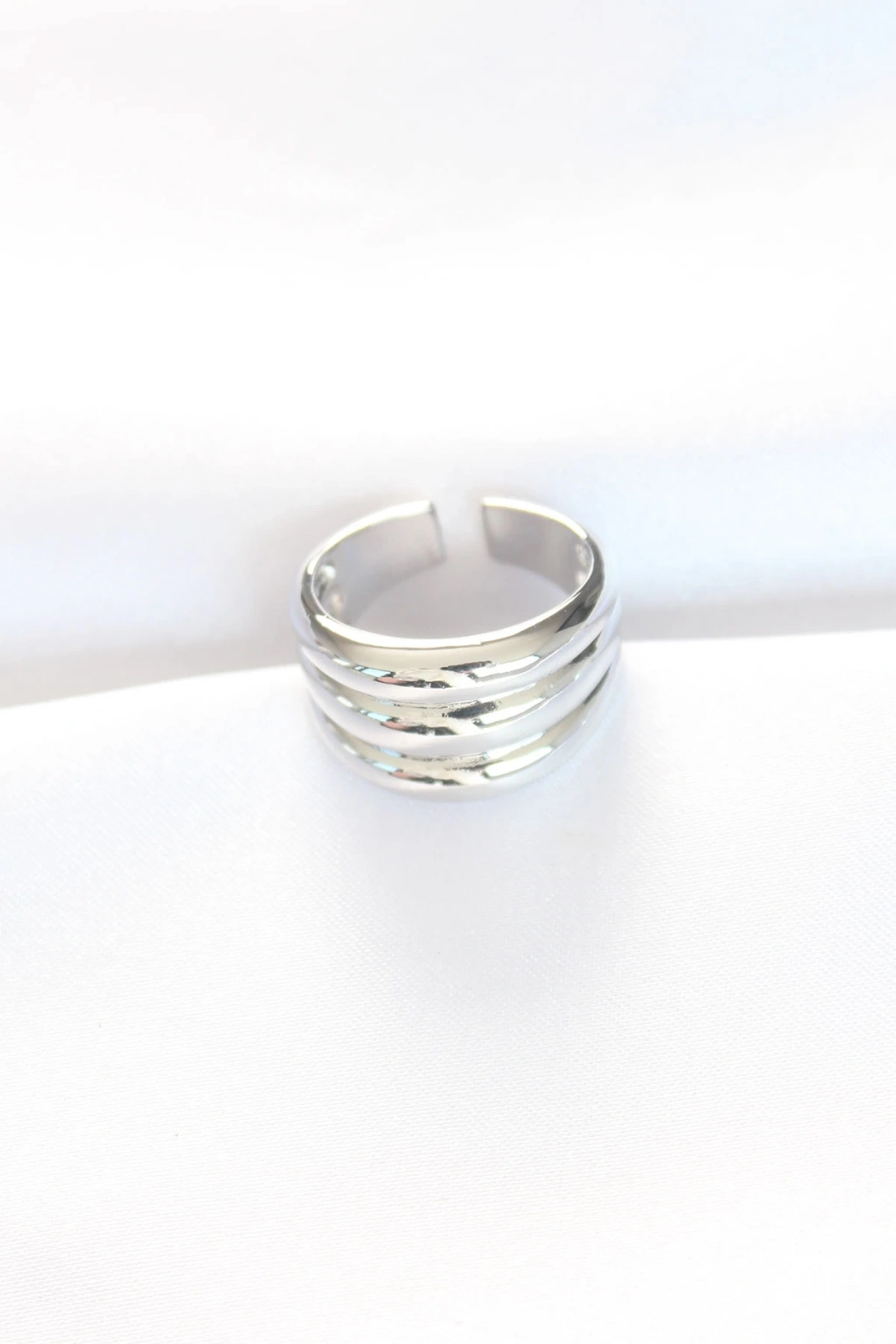 BFS Silver Renk Ayarlanabilir Çizgili Bombe Yüzük