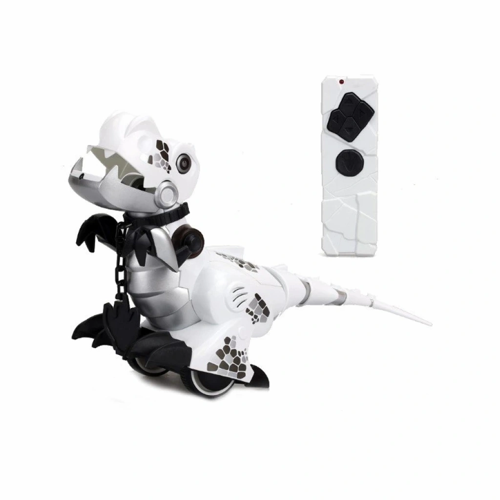 Silverlit den Train My Dino ! Etkileşimli ve eğlenceli ses efektlerine sahip uzaktan kumandalı akıllı robot dinozor! 2 farklı oyun moduna sahip Train My Dino ile çok eğleneceksin! Vahşi modda olduğunu gözlerinin kırmızı olmasından anlayabilirsin. Akıllı sensörleri sayesinde önüne çıkan engellerden kaçınarak rastgele hareketler yapacak, kuyruğunu oynatacak ve kükreyecek. Tarihler öncesinden gelen dostunu evcilleştirmek ise senin elinde. Tasmasını taktığında dinozorun gözleri yeşil renge dönerek ve evcil moda geçecek. Alnına dokunduğunuzda ise hissederek size kükreyerek cevap veriyor. Akıllı robot oyuncak T-rex'in seni takip etmesini istiyorsan kumanda üzerindeki eylem düğmesine basılı tutman yeterli. Her yerde seni takip edecek ve nereye gidersen git peşinden hiç ayrılmayacak. Elinizi Dino'nun yüzüne yakın hareket ettirdiğinizde veya çenesine dokunduğunuzda ise hareket algılayıcı sensörleri sayesinde elinizi takip ediyor. Uzaktan kumanda ile topunu yakalaması için onu kontrol edebilirsin.