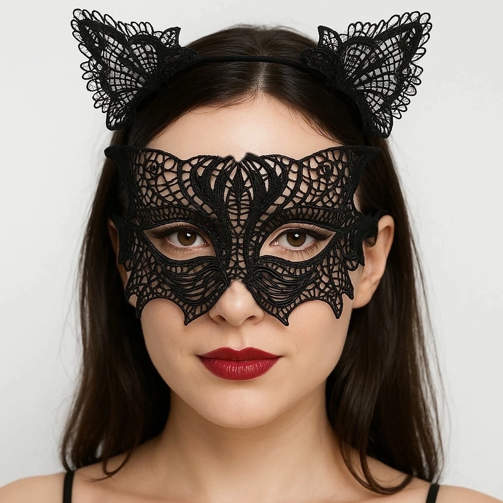 Zarafeti ve gizemi bir arada sunan Siyah Dantel Kedi Maskesi & Taç Seti, özel davetler, maskeli balolar, kostüm partileri ve fotoğraf çekimleri için mükemmel bir seçimdir. İnce işlenmiş dantel detayları ve kedi kulak tasarımlı taç ile şıklığınızı ön plana çıkarır.