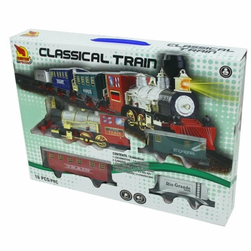Kutu içinde; 1 adet lokomotif 2 adet yolcu vagonu 1 adet kömür vagonu 4 adet düz ray 8 adet kavisli ray vardır.