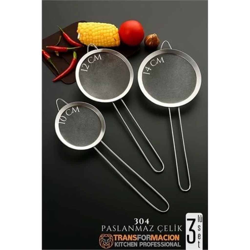 ? 3’lü 304 Paslanmaz Çelik Süzgeç Seti – 10 cm / 12 cm / 14 cm | Çok Amaçlı | Transformacion Kitchen Professional