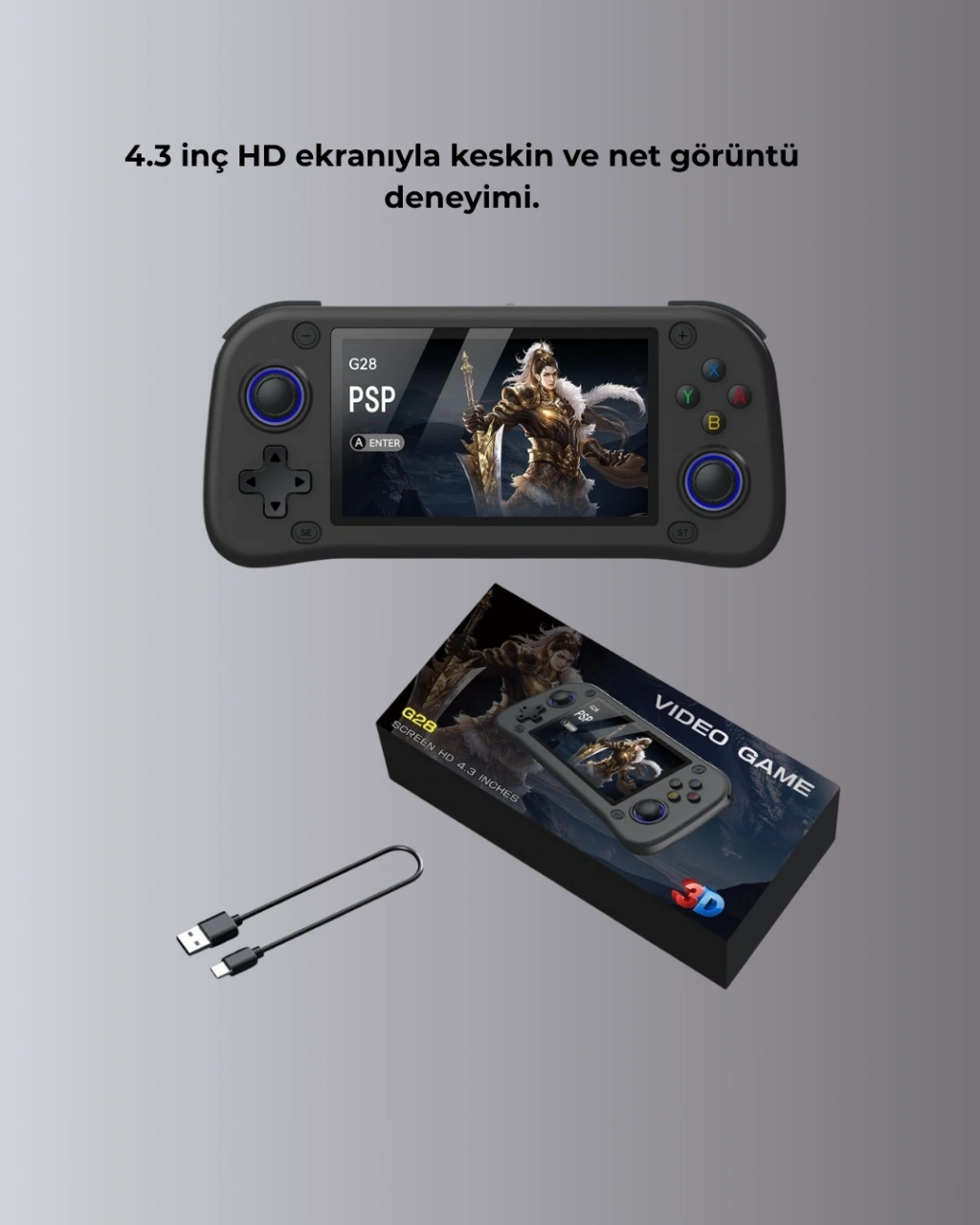 Taşınabilir retro oyun konsolu, 64GB TF kartı ve 10000 oyunla birlikte gelir. PSP, arcade ve daha birçok popüler emülatörü destekler.RK3128 Cortex-A7 işlemci ve 4GB RAM desteği ile oyunlarda takılma olmadan hızlı bir deneyim sunar. Yeni yazılım sistemi sayesinde performans önceki nesillere göre çok daha iyidir.4.3 inç IPS ekran, 640x480 çözünürlükle net ve canlı görüntü sağlar. Renk doygunluğu ve yüksek kontrastıyla oyun keyfini artırır.Taşınabilir yapısı sayesinde her yere götürebilir, boş zamanlarınızı keyifli hale getirebilirsiniz. Çantanıza sığacak kadar küçük, güçlü performansıyla dikkat çekici bir üründür.Şık kutu tasarımı sayesinde sevdiklerinize hediye etmek için de uygundur.