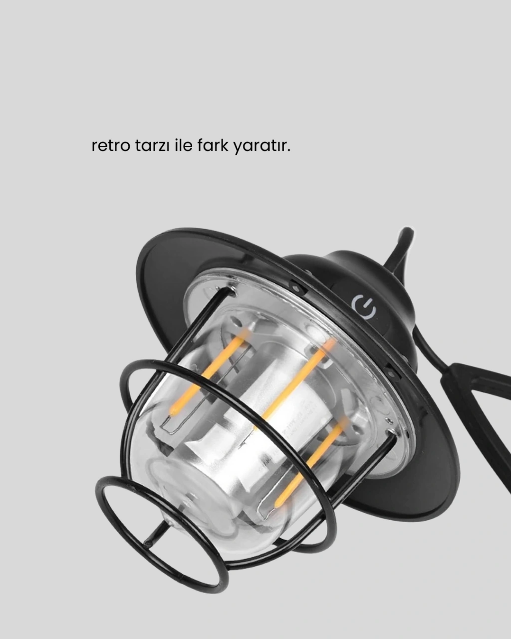 Outdoor yaşamı sevenlerin vazgeçilmez aksesuarlarından biri olan bu taşınabilir retro kamp ışığı, estetik görünümü ve dayanıklı yapısıyla öne çıkar. Çam konisi şeklindeki tasarımı, klasik kamp lambalarından farklı olarak dekoratif ve sıcak bir aydınlatma sunar. Gece lambası fonksiyonu sayesinde çadır içinde huzurlu bir ortam yaratır; göz yormayan yumuşak LED ışığı gece boyunca zarif bir aydınlatma sağlar.Bu lambanın en büyük avantajlarından biri hafif ve kolay taşınabilir olmasıdır. Kamp çantasına, sırt çantasına veya el bagajına rahatlıkla sığar. Açık hava etkinliklerinde, kamp alanlarında, yürüyüşlerde veya acil durumlarda hızlıca kullanılabilir. Minimal ve kompakt tasarımı, hem taşıma kolaylığı hem de pratik kullanım sağlar.Güçlü bataryası sayesinde uzun süreli aydınlatma sunar. Büyük kapasiteli pil yapısı, sık şarj gerektirmez ve uzun outdoor aktivitelerinde bile kesintisiz ışık sağlar. Bu özellik, özellikle elektriğe erişimin kısıtlı olduğu bölgelerde büyük kolaylık sağlar. Çadır içinde gece boyu yumuşak bir aydınlatma sunarak rahat uyku ortamı sağlar.Su geçirmez dış yüzeyi, lambayı yağmur ve nemden korur. Açık havada karşılaşılabilecek çiy, sis, yağmur gibi zorlu hava koşullarında güvenle kullanılmasını mümkün kılar. Böylece hem kamp hem piknik hem de balıkçılık gibi aktivitelerde ideal bir yardımcı haline gelir.Retro görünümü sayesinde yalnızca outdoor etkinliklerde değil, ev dekorasyonunda da kullanılabilir. Balkon, bahçe, teras, yatak odası veya çocuk odası gibi alanlarda sıcak bir ambiyans oluşturur. Nazik ışığı göz yormaz ve gece lambası olarak mükemmel bir kullanım sunar.Hem estetik hem fonksiyonel özellikleri bir araya getiren bu kamp lambası; açık hava aktivitelerinde güvenilir bir ışık kaynağı arayanlardan dekorasyon tutkunlarına kadar geniş bir kullanıcı kitlesine hitap eden ideal bir üründür.