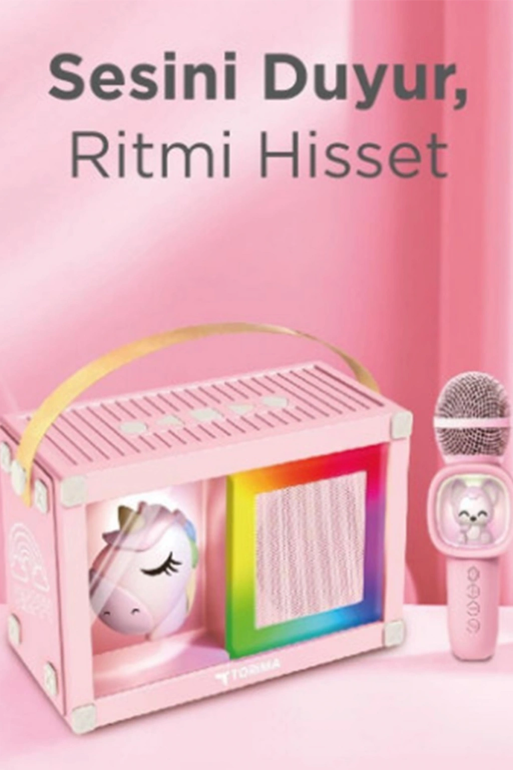 BFS Taşınabilir Rgb Işılı Sevimli Figürlü Mikrofonlu Karaoke Bluetooth Hoparlör Pembe