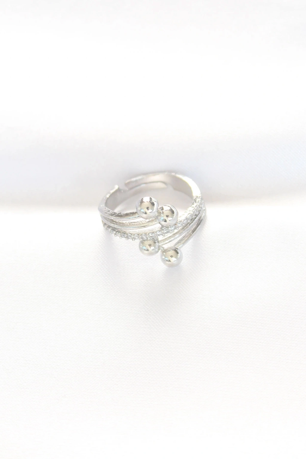 BFS Topçuk Model Zirkon Taşlı Silver Renk Ayarlanabilir Yüzük