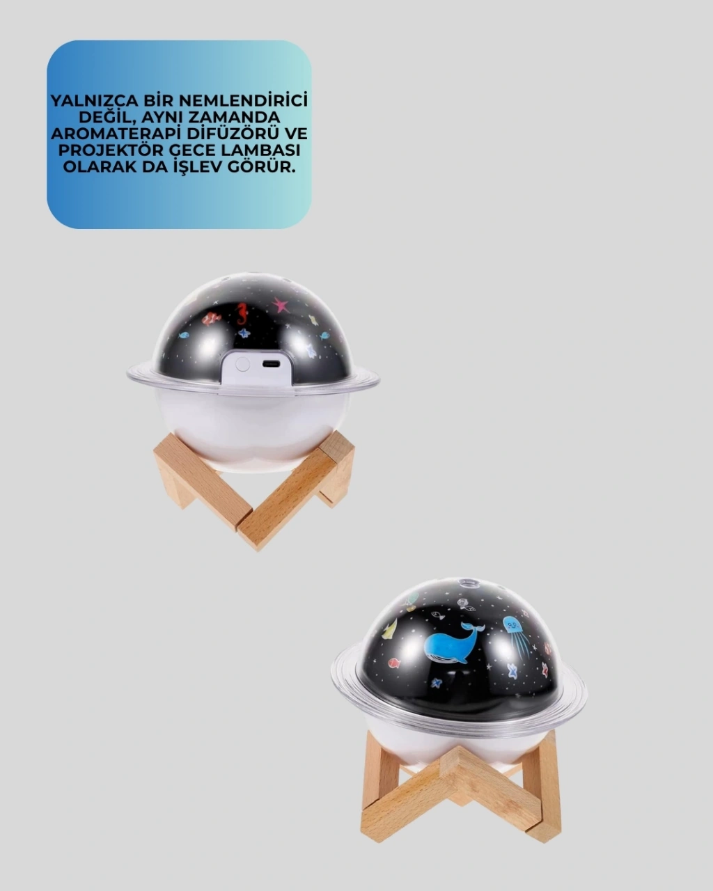 USB ile çalışan bu nemlendirici cihaz, gün içinde bilgisayar başında çalışanlar için idealdir. Sadece havayı nemlendirmekle kalmaz; projektör ışığı sayesinde rahatlatıcı bir görsel atmosfer de sunar. Yatak odalarında, bebek odalarında veya ofiste masa üzerinde kullanmak için uygundur.Cihaz aromaterapi özelliği sayesinde çeşitli esansiyel yağlarla da kullanılabilir. Bu, hem hava kalitesini artırır hem de stres azaltıcı etki sağlar. Kompakt ve hafif yapısı sayesinde seyahatlerde de kullanılabilir. Sızdırmaz hazne yapısı, uzun süre güvenli kullanım sunar.