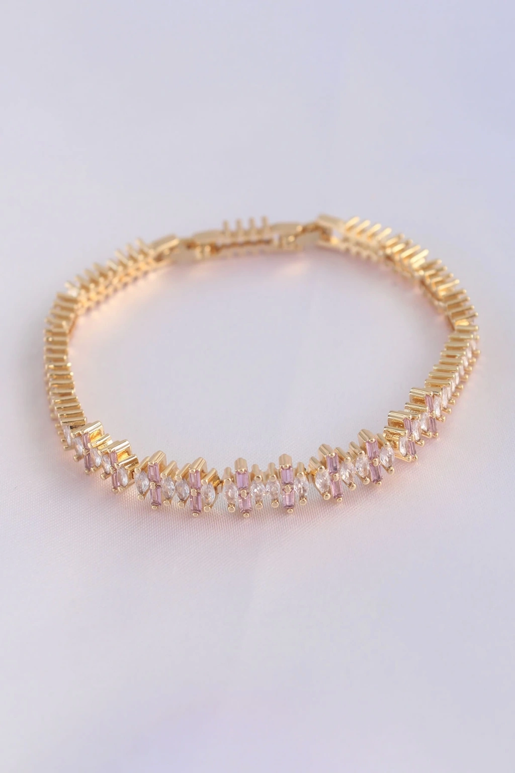 BFS Vip Seri Pirinç Pembe Zirkon Taşlı Gold Renk Baget Model Bileklik