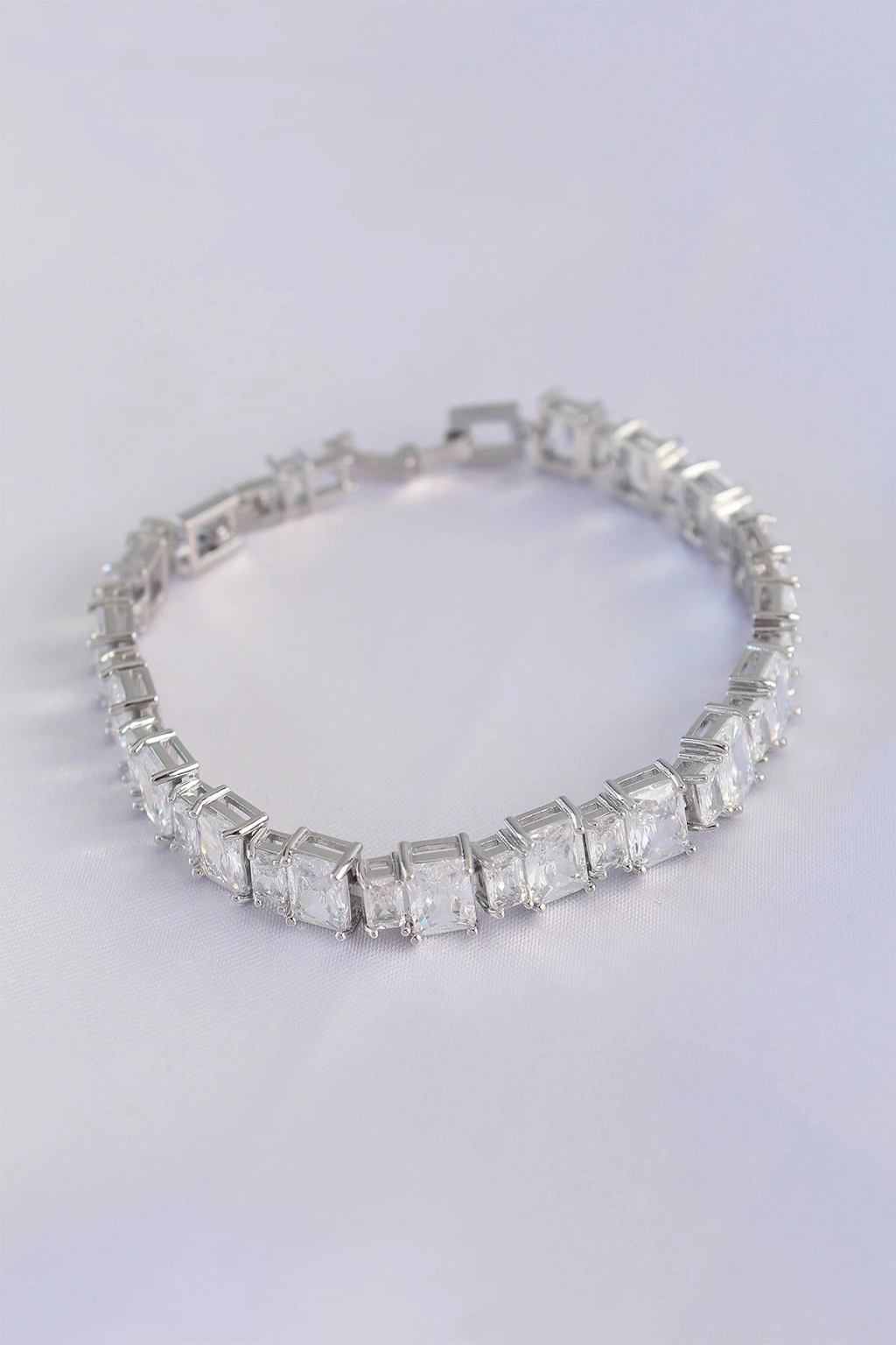 BFS Vip Seri Pirinç Zirkon Taşlı Gümüş Renk Baget Su Yolu Model Bileklik