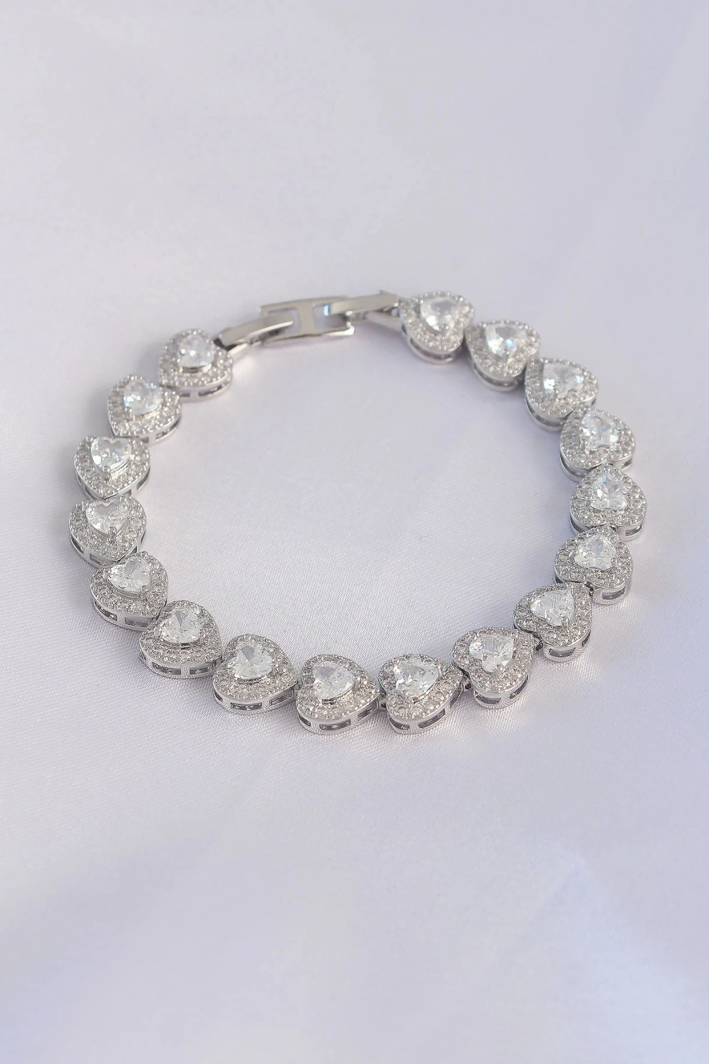 BFS Vip Seri Pirinç Zirkon Taşlı Gümüş Renk Kalp Model Bileklik