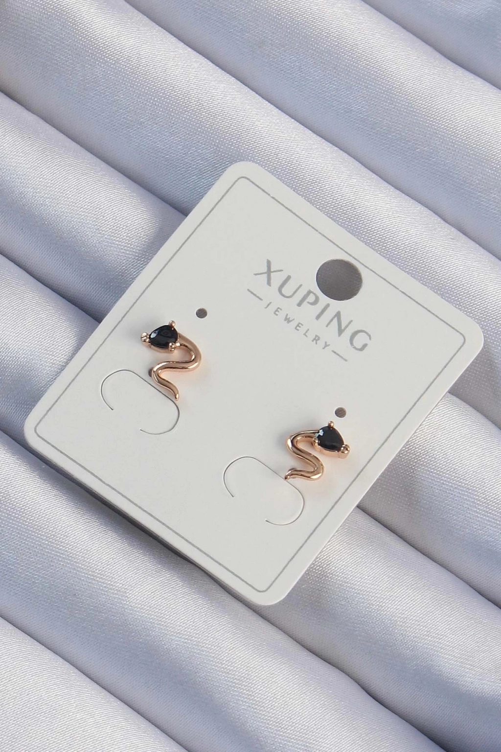 BFS Xuping Rose Renk Siyah Zirkon Taşlı Kıvrımlı Küpe