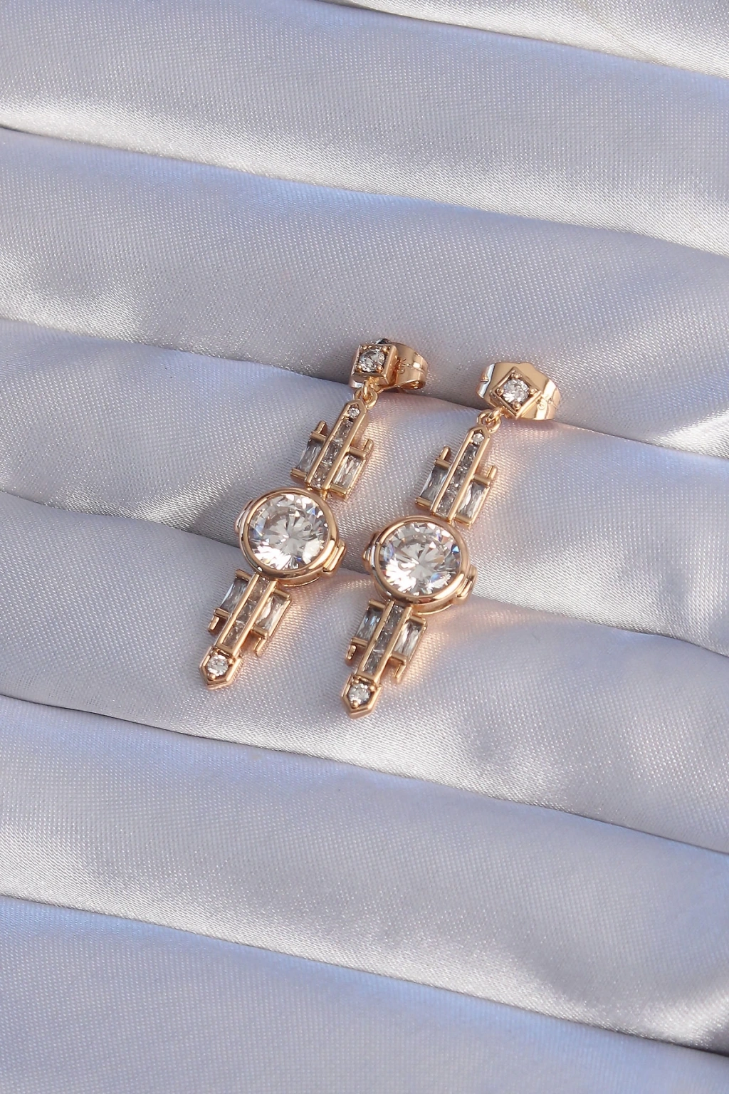 BFS XUPİNG Rose Renk Zirkon Taşlı Geometrik Sallantılı Küpe