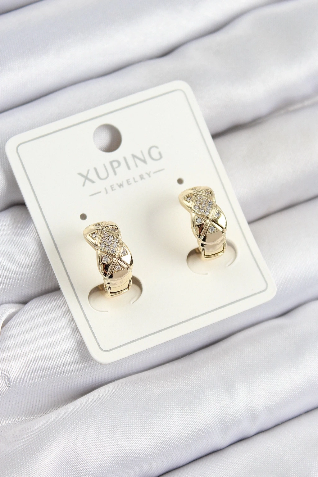 BFS Xuping Zirkon Taşlı Geometrik Desenli Halka Model Gold Renk Kadın Küpe