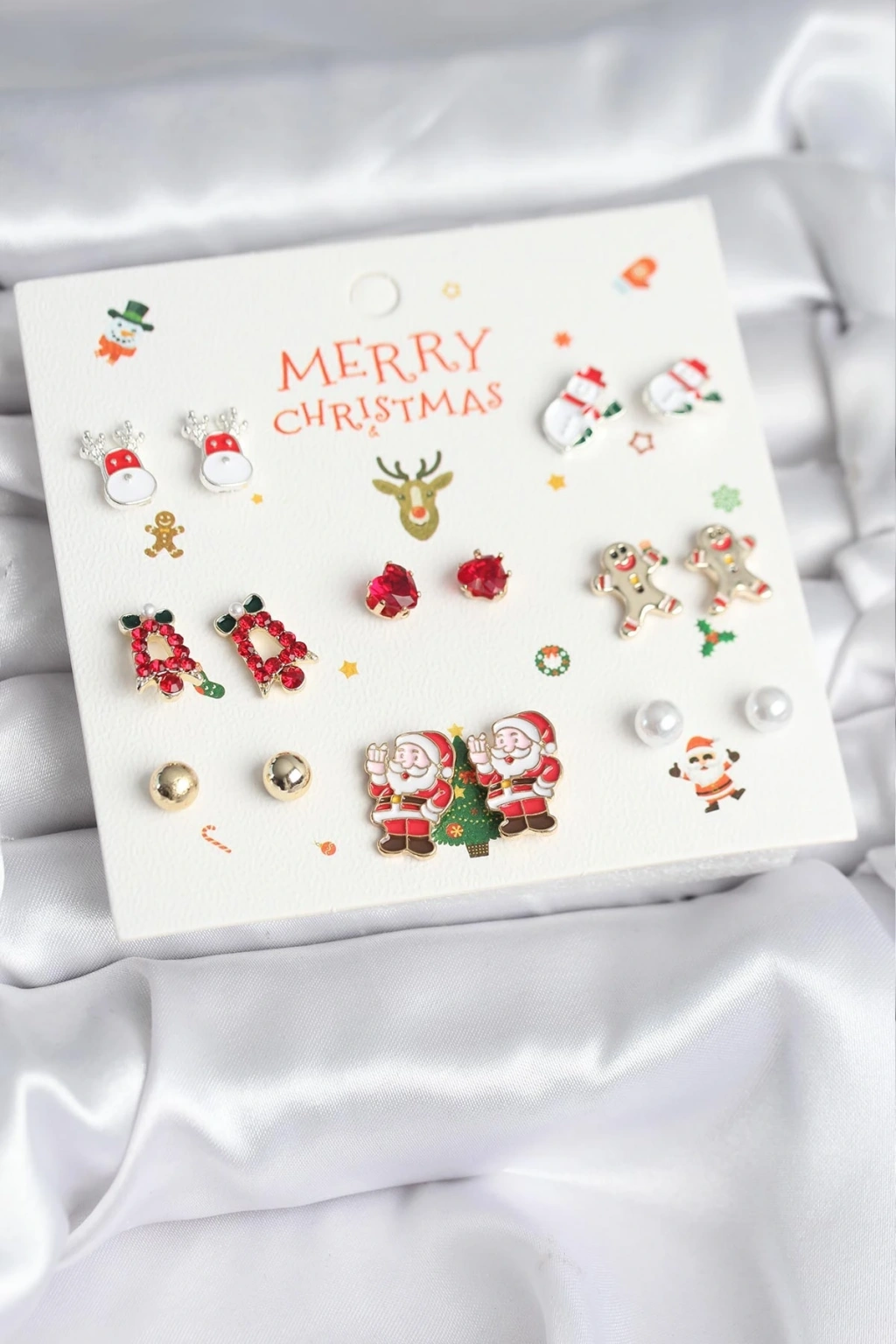 BFS Yılbaşı Temalı Karışık Model 8 Çift Yılbaşı Temalı Kadın Küpe Seti