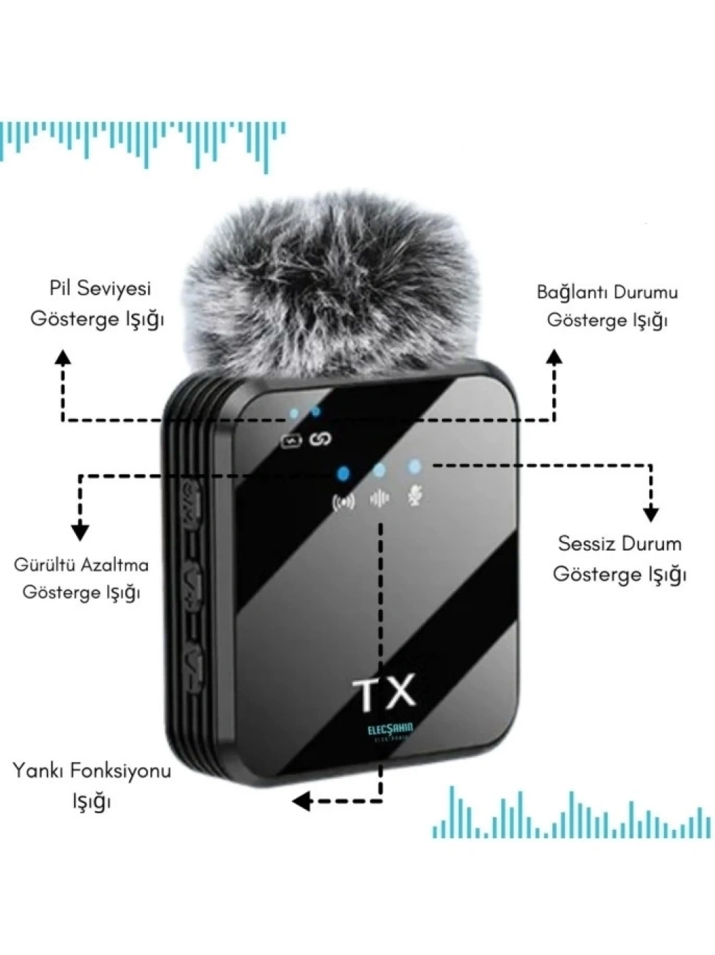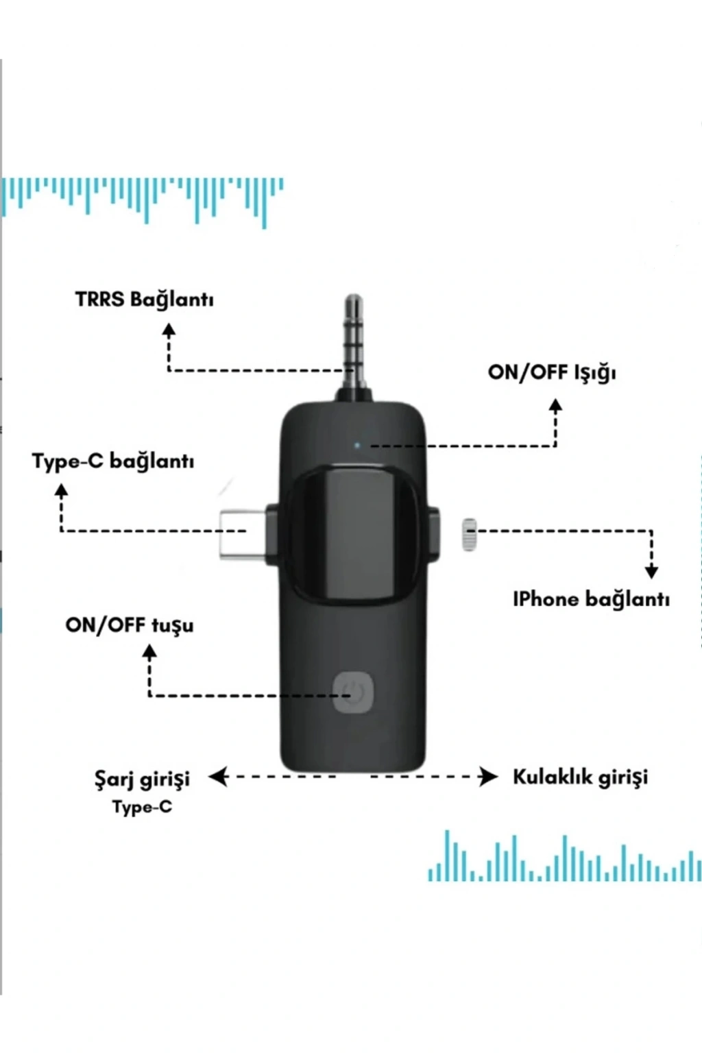 BFS iPhone İçin Çift Mikrofonlu Telsiz Yaka Mikrofonu 360 Derece HD Ses