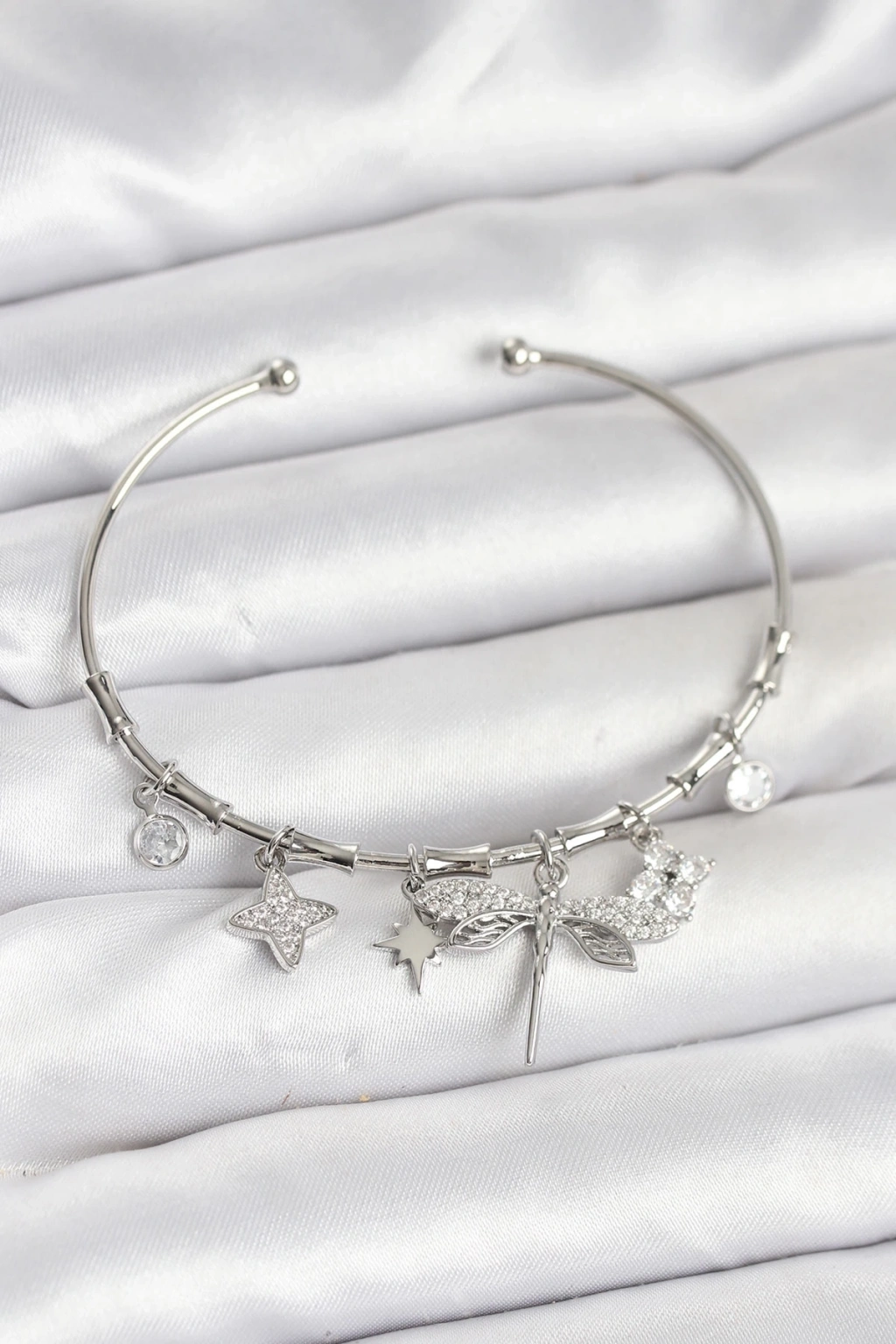 BFS Yusufçuk Charmlı Gümüş Renk Pirinç Kadın Bileklik