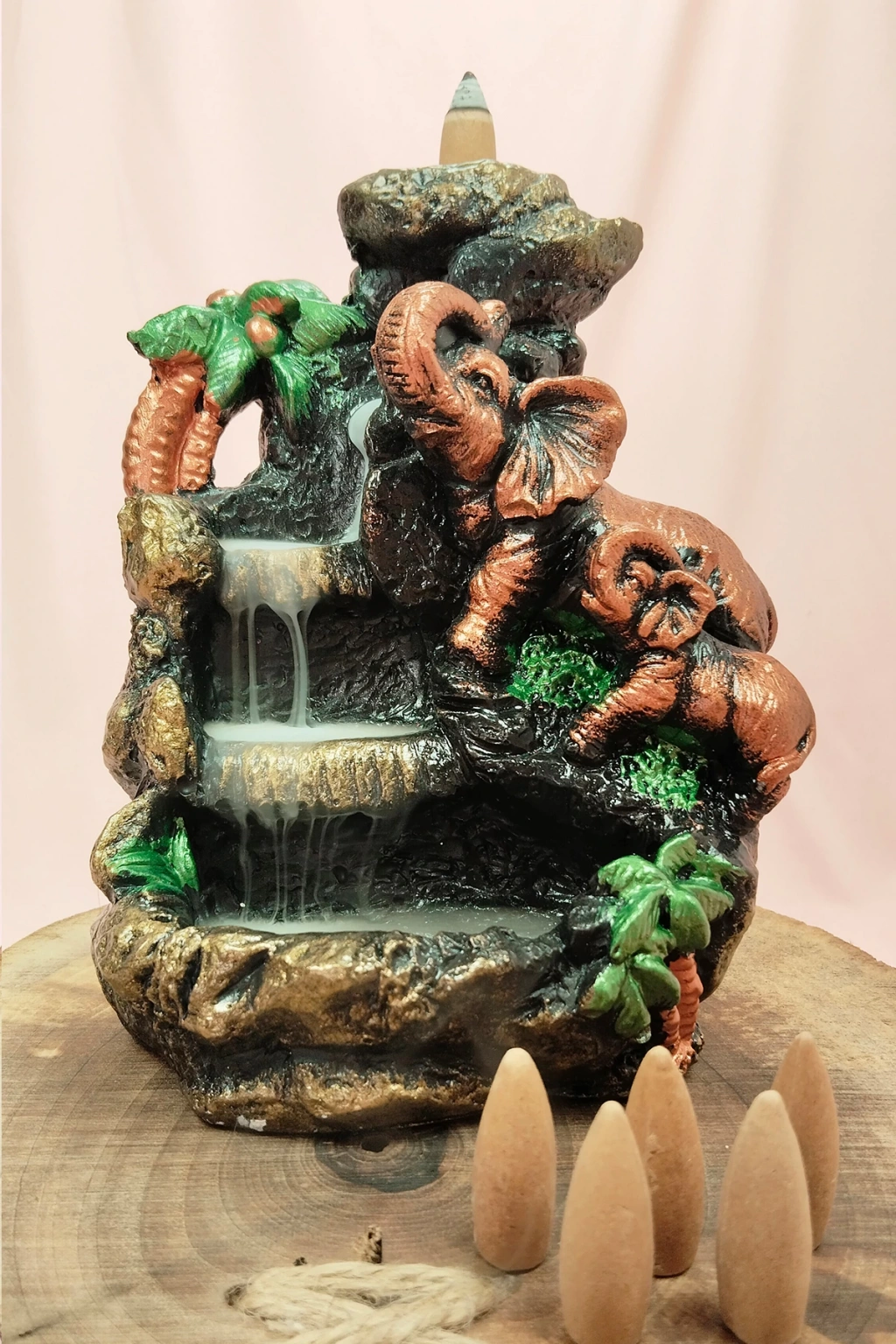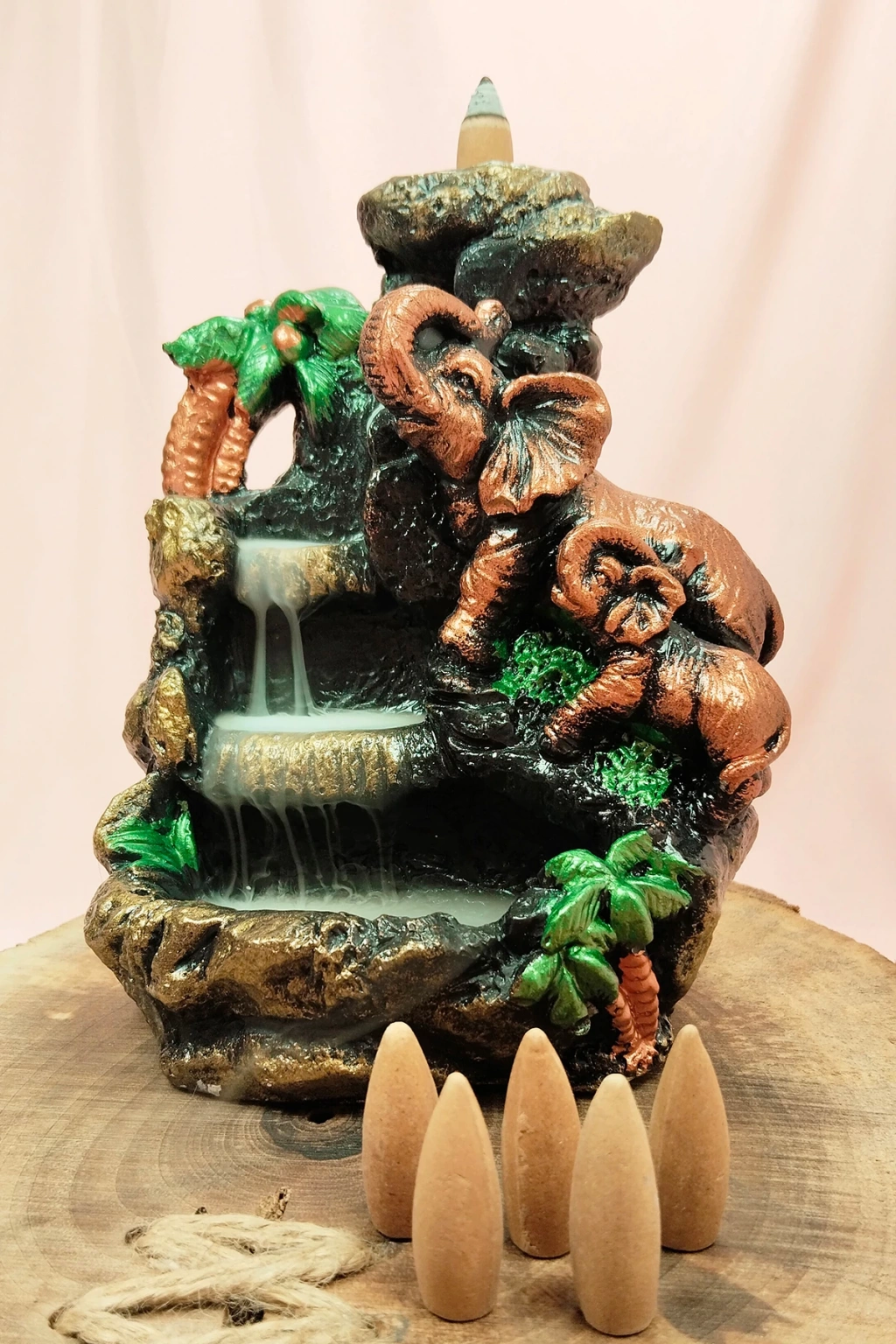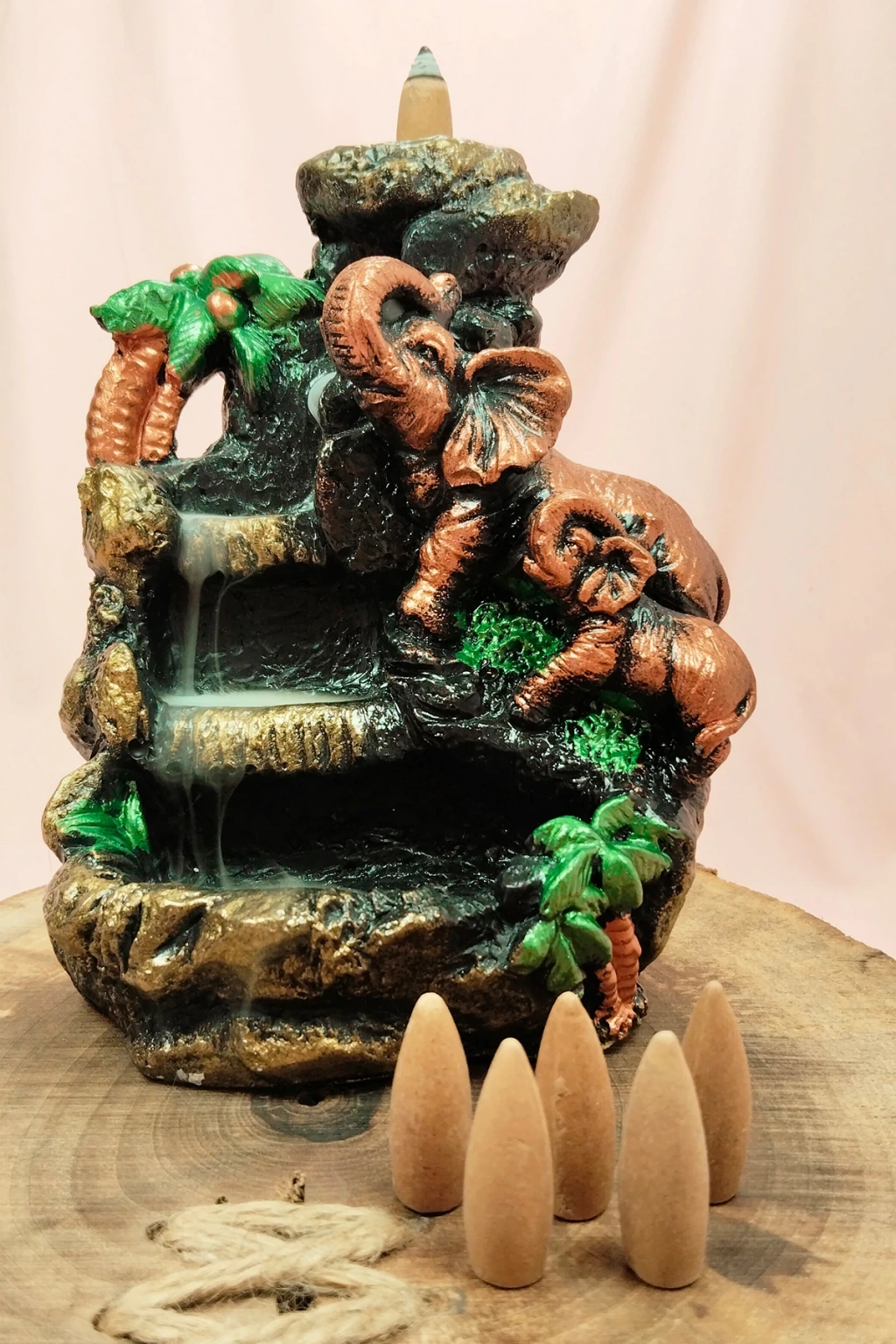Buyuk Boy Fil Figürlü Biblo Model Geri Akış Şelale Tütsülük 5 Adet Koni Hediye
