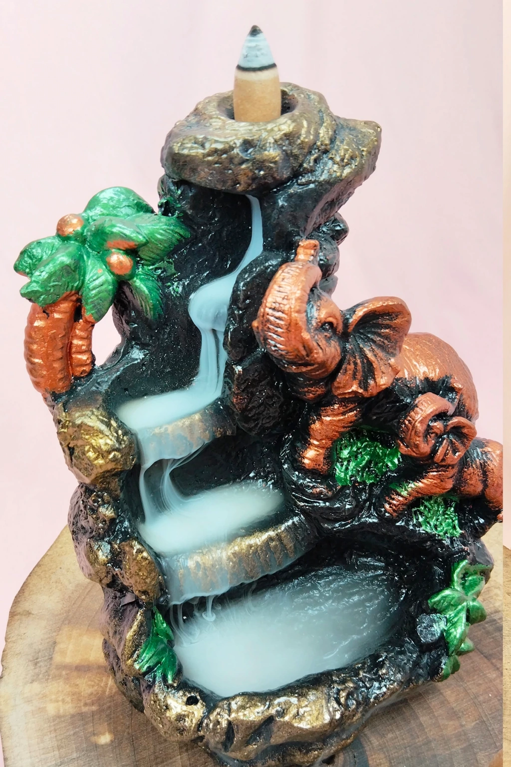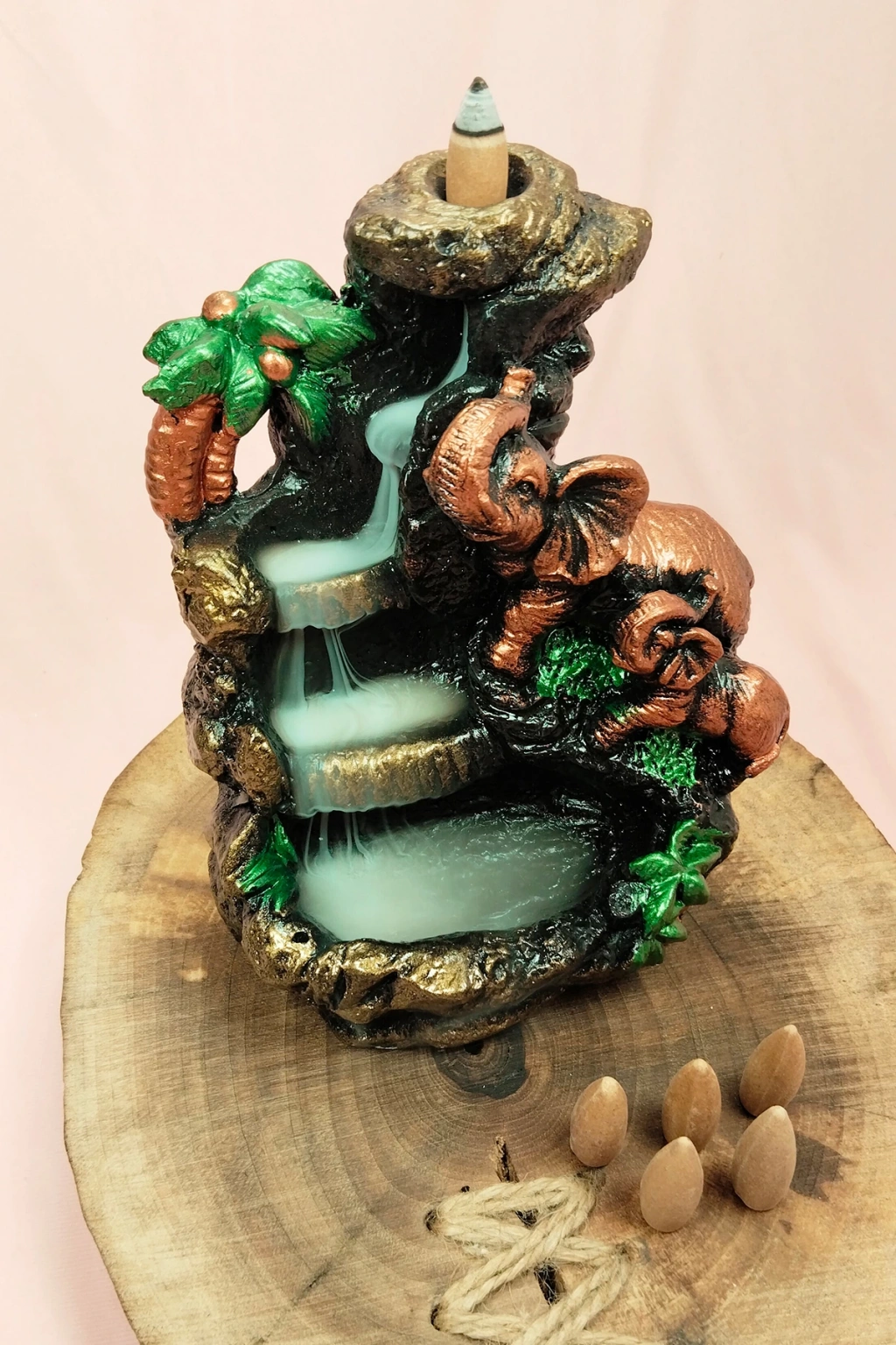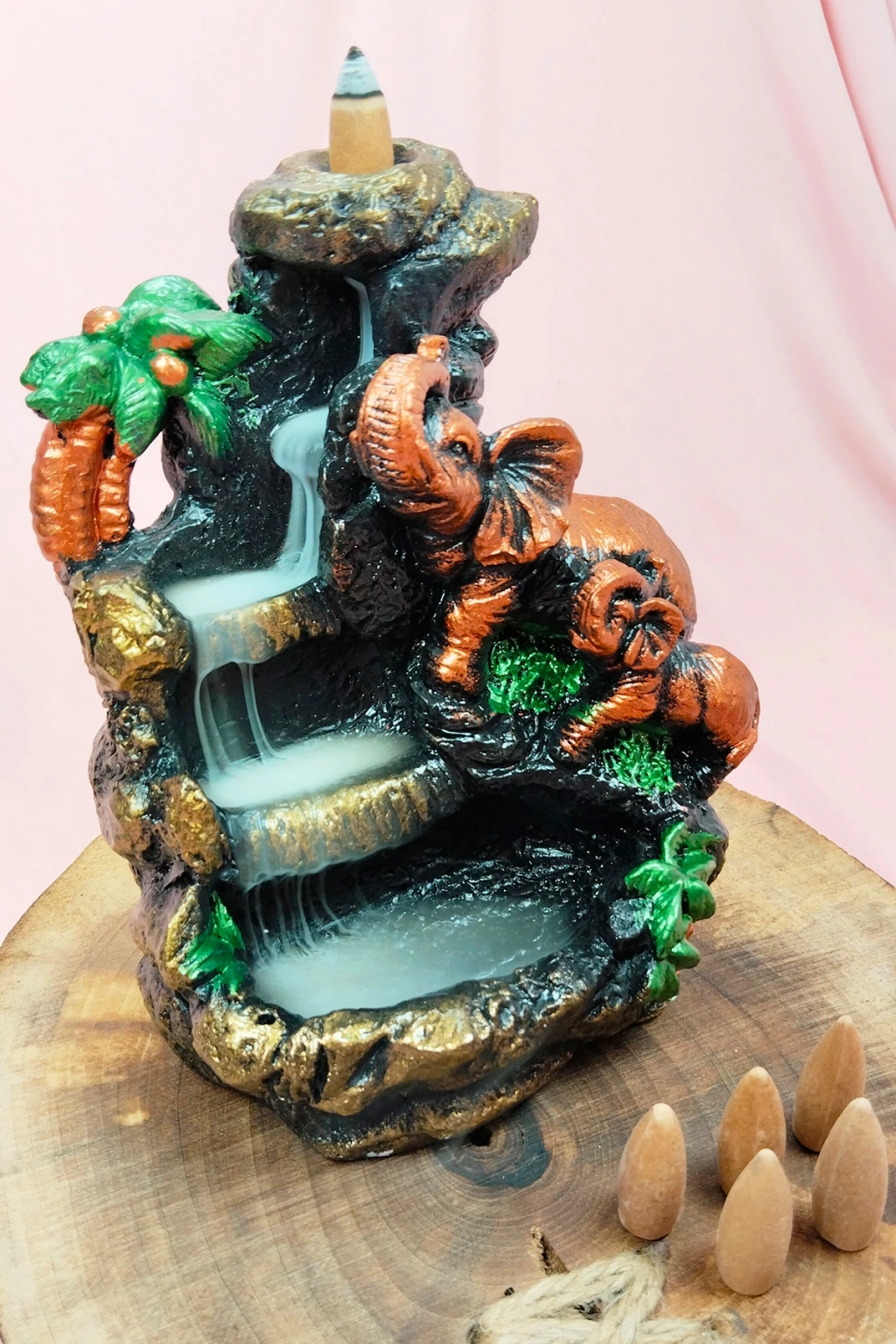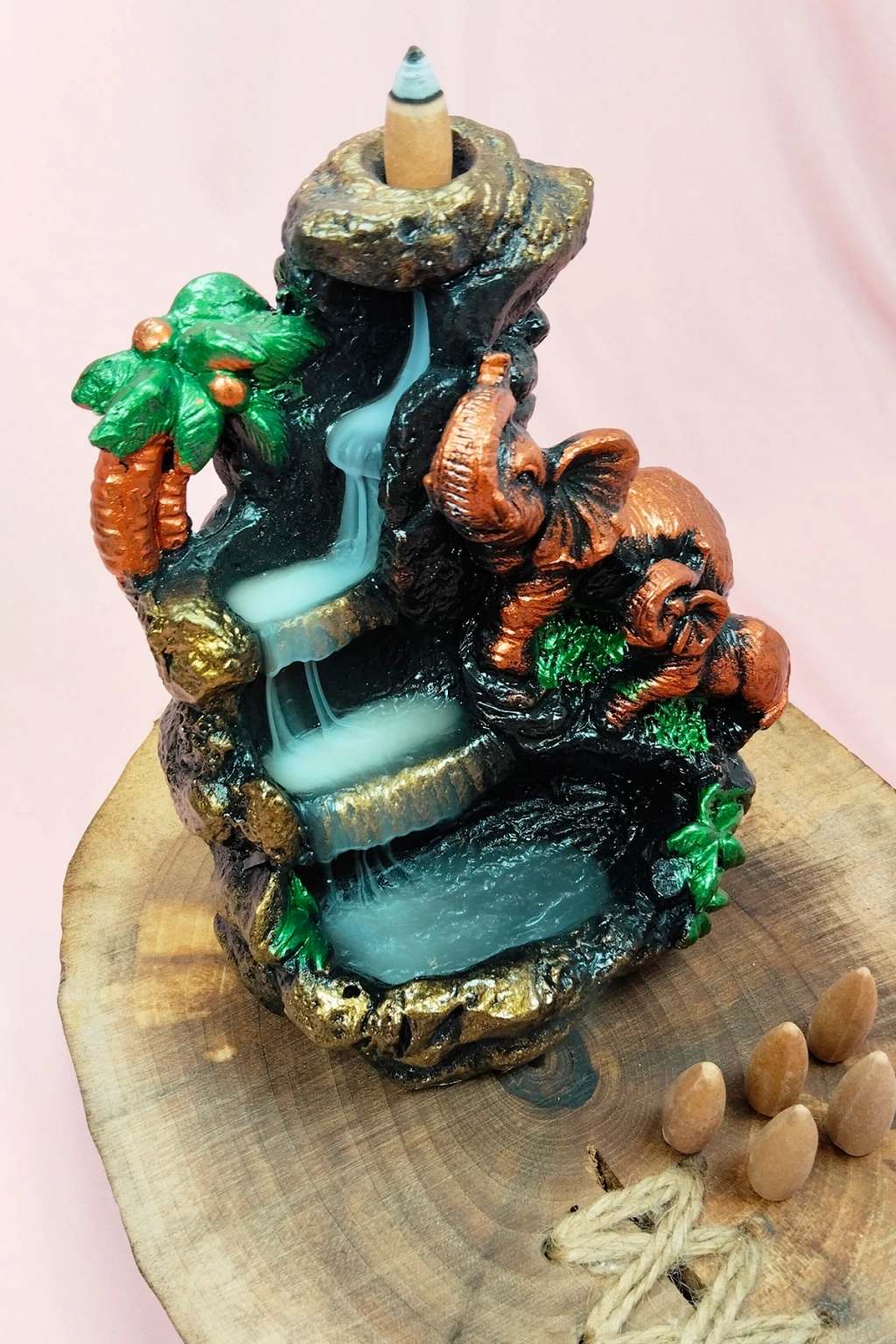Buyuk Boy Fil Figürlü Biblo Model Geri Akış Şelale Tütsülük 5 Adet Koni Hediye
