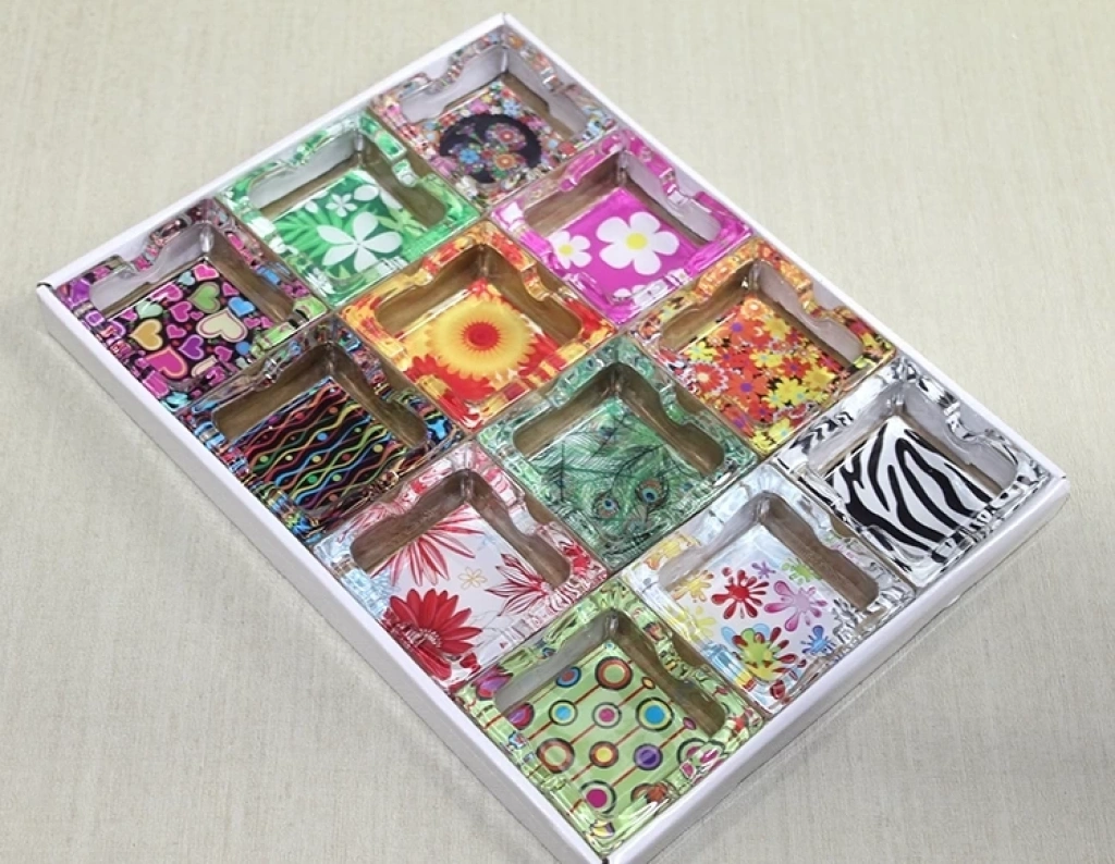 BFS Cam Küllük - Desenli 2 li Küllük Seti Kafe Küllüğü Restoran Küllüğü Masaüstü Küllük