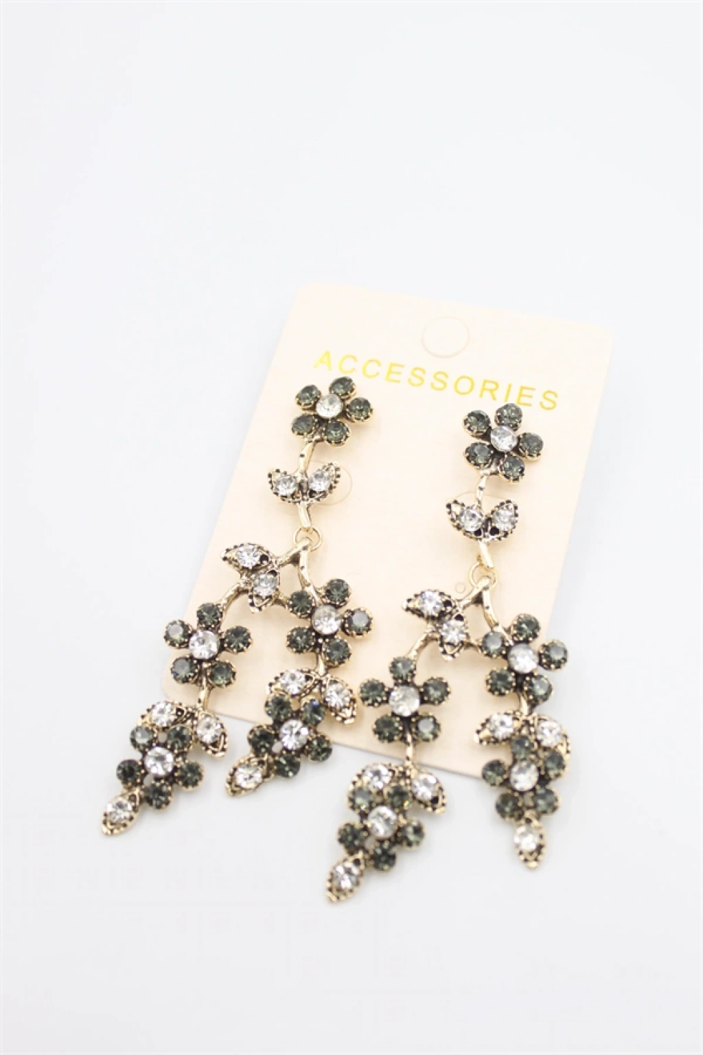 Mey İthalat® Pirinç Gold Renk Siyah Taşlı Vintage Kadın Küpe