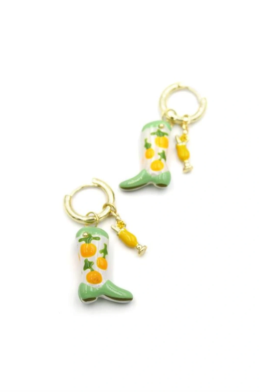 BFS Mineli Karışık Renkli Gold Pirinç Kadın Küpe