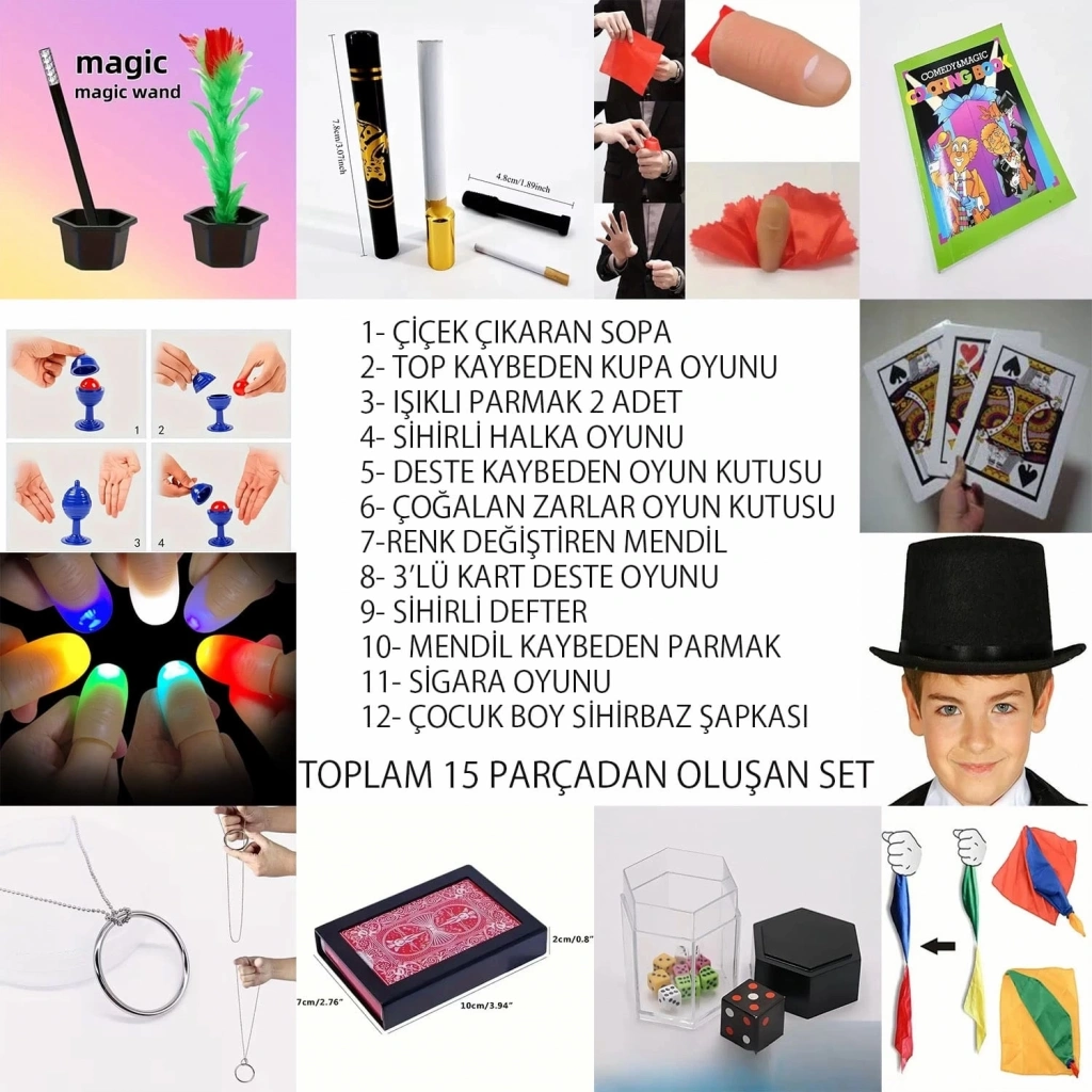 Çocuklar İçin 15 Parça Sihirbazlık Ve İllüzyon Seti – Başlangıç Gösteri Kutusu