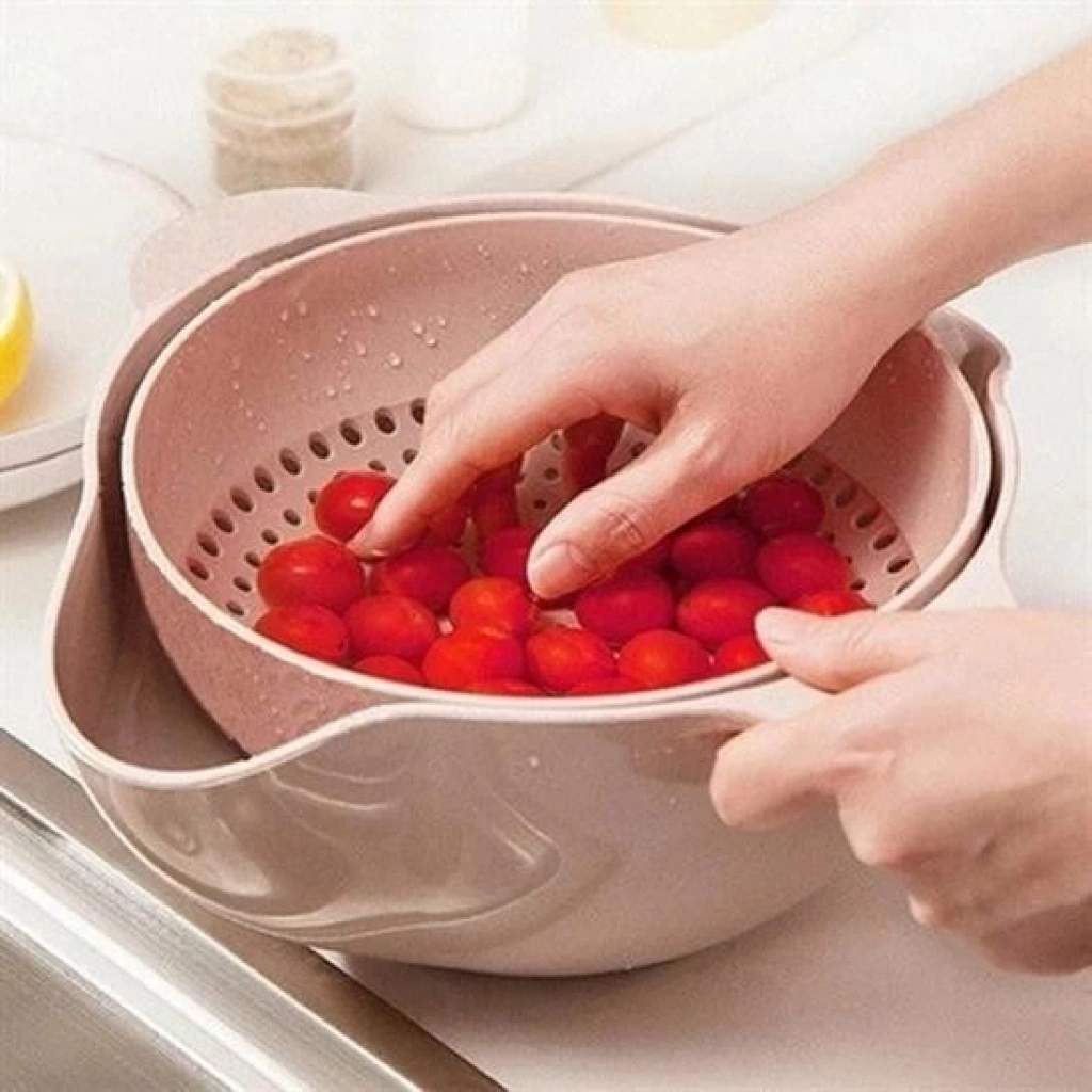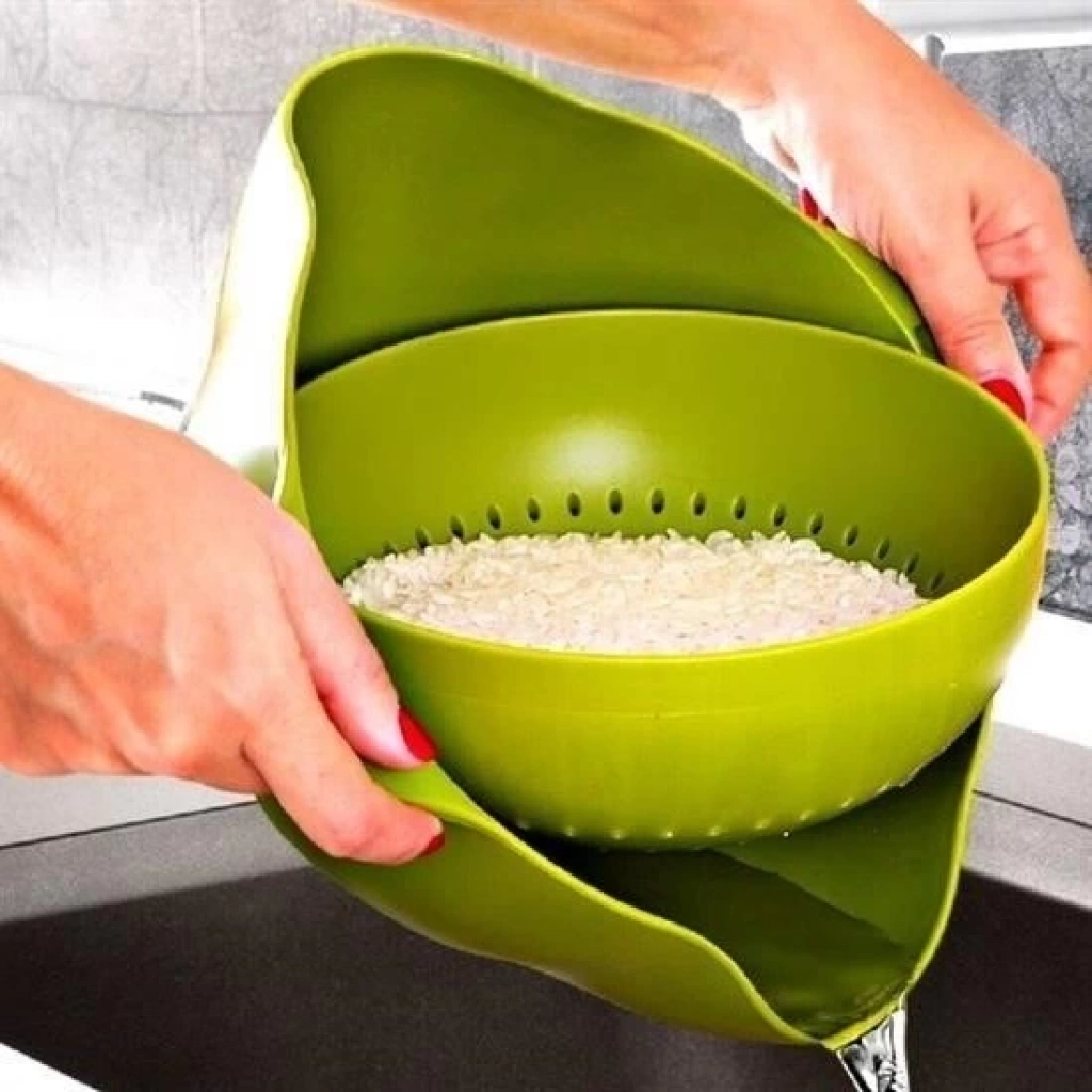 Çok Amaçlı 360 Derece Dönebilir Pratik Hazneli Mutfak Süzgeci Elek