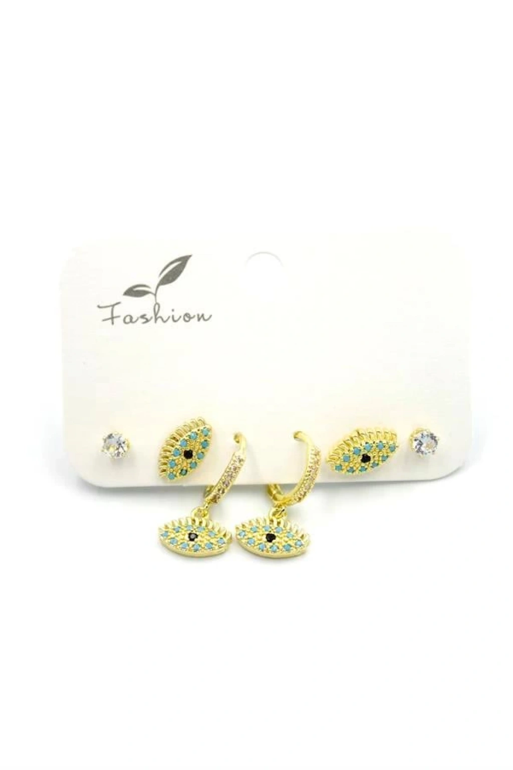 BFS Mineli Karışık Renkli Gold Pirinç Kadın Küpe