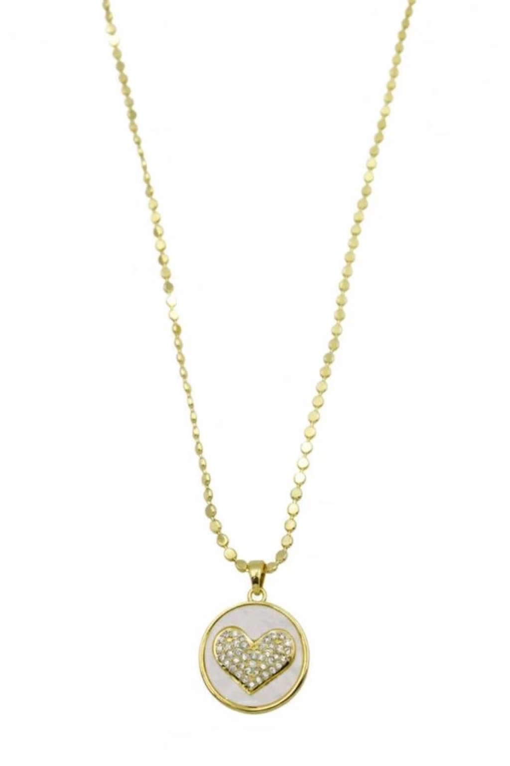 BFS 316L Çelik Gold Renk Zincir Sedefli Kalp Model Kadın Kolye