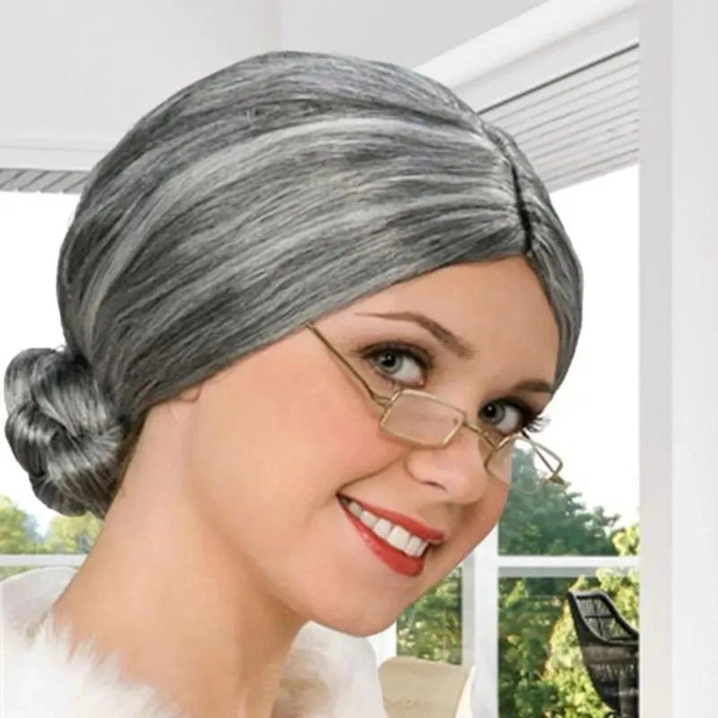 Gri Renk Yaşlı Peruğu Anneanne Babaanne Peruk Topuz, yetişkinler ve çocuklar için uygun, sizi geçmişe götürecek bir aksesuardır. Gri rengi ve topuz modeli ile yaşlı bir anneanne veya babaanne görünümü için idealdir.