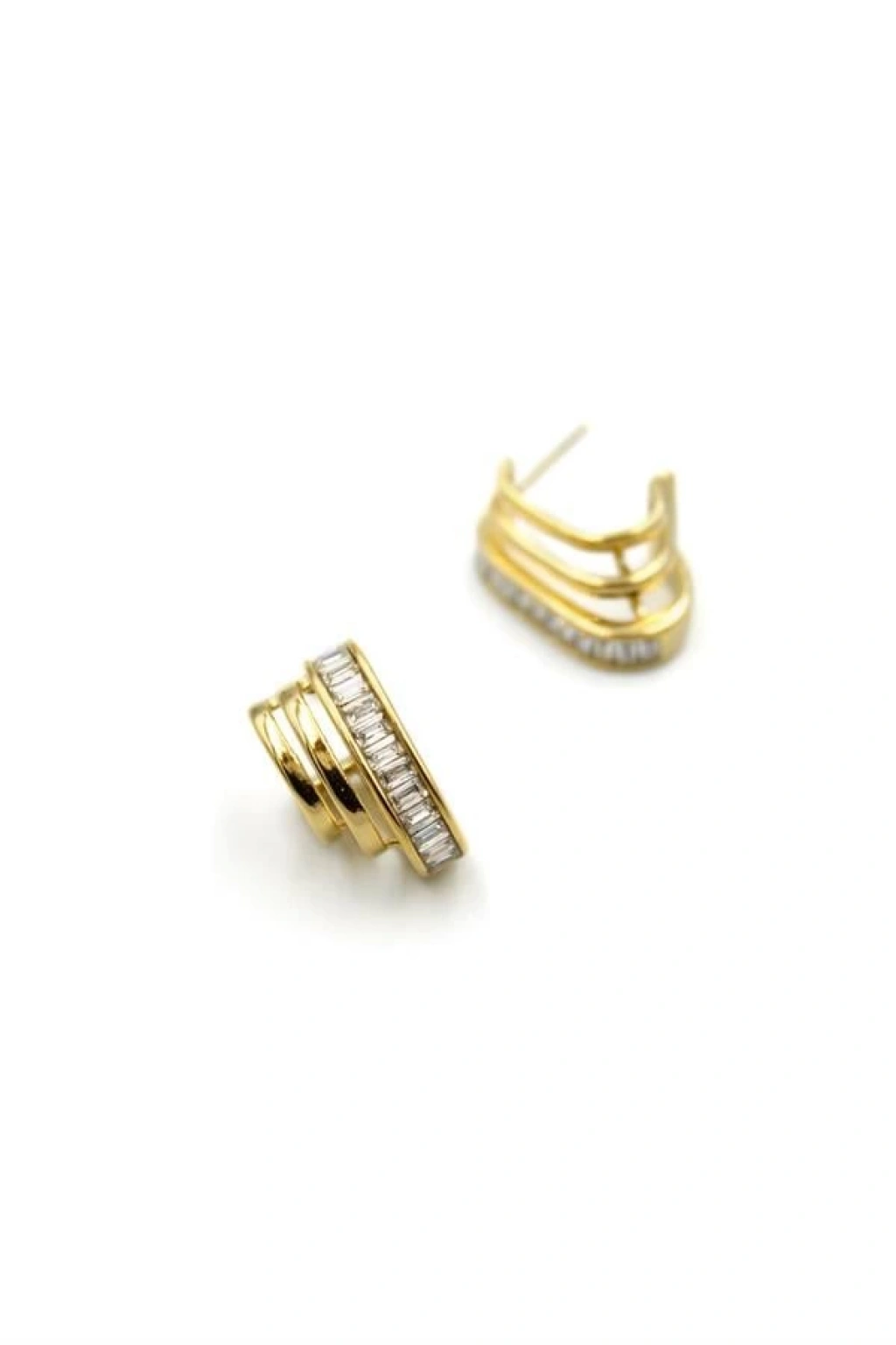 BFS Kaburga Model Zirkon Taşlı Pirinç Kadın Küpe