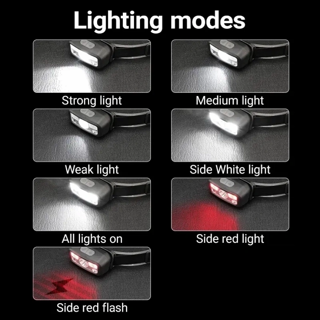 Hs-43 Sensörlü Şarjlı Type-c Çok Amaçlı Kırmızı Işıklı Kafa Lambası