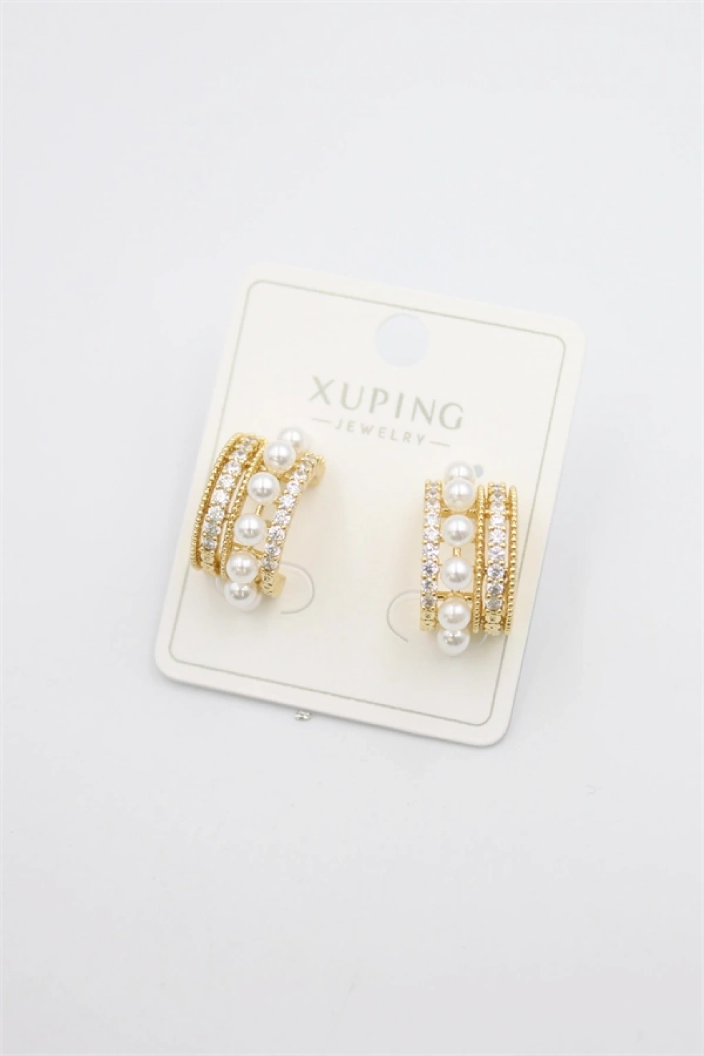 Mey İthalat® Pirinç Gold Renk Sarmal Model İncili Kadın Küpe