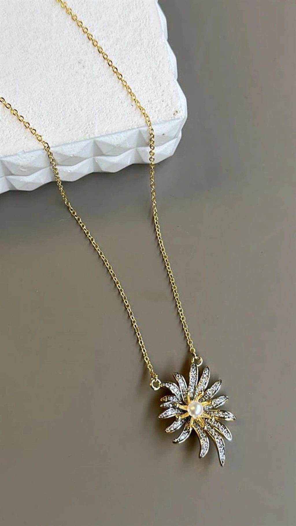 BFS 316L Çelik Zincir Gold Zirkon Taşlı Yılbaşı Tema Kadın Kolye