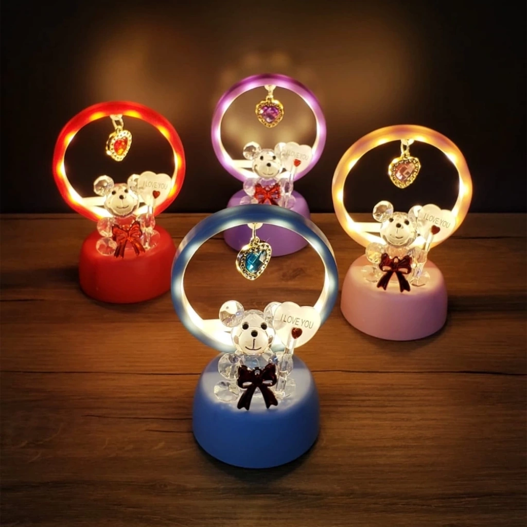 Karanlıkta yakıldığı zaman ortama hoş bir görünüm veren ışıklı ayıcık biblo.