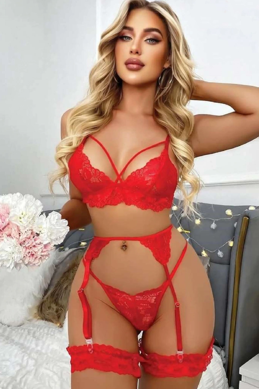 Kadın Fantezi Kostüm Harness Erotik Jartiyer 7112 Kırmızı - Royaleks