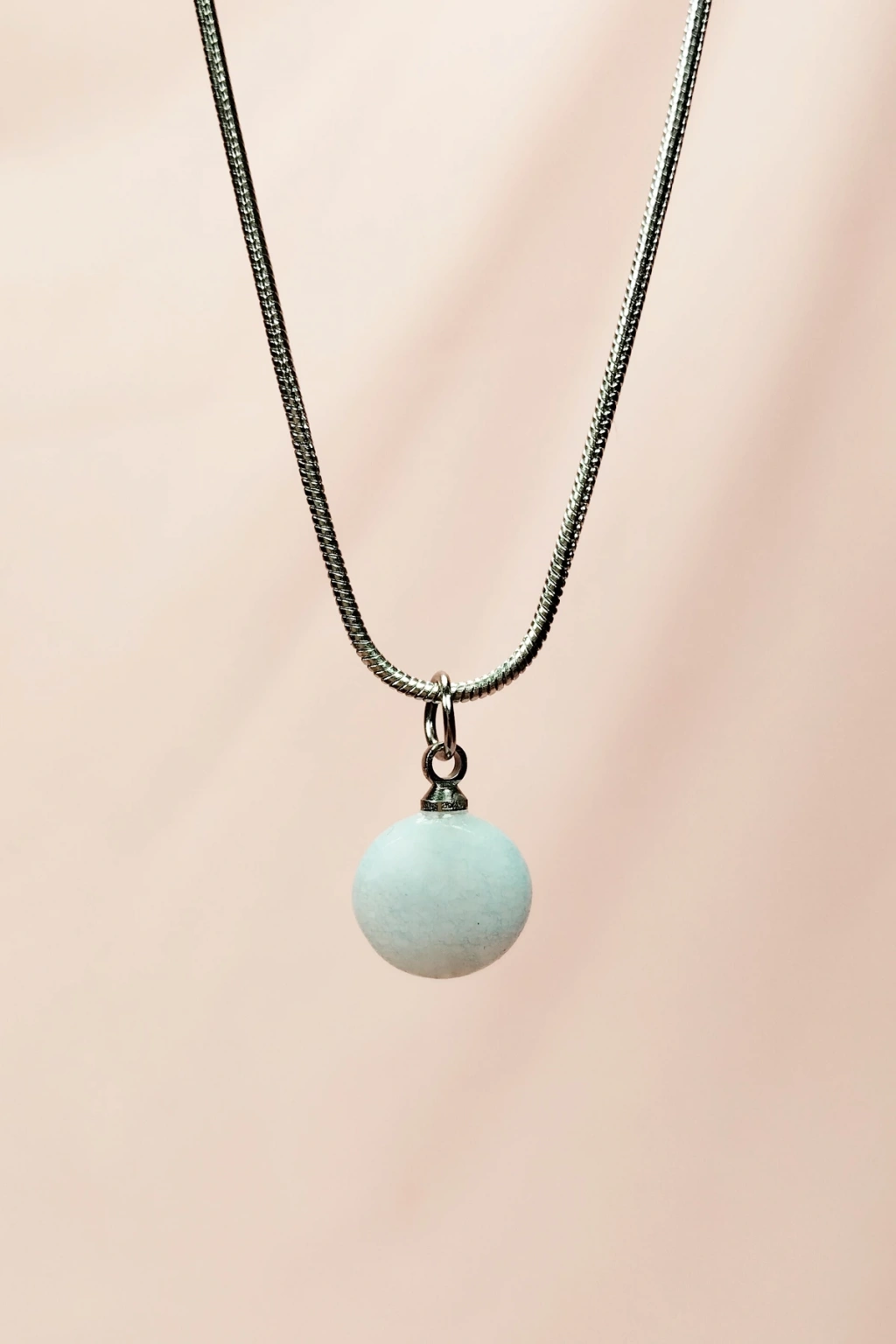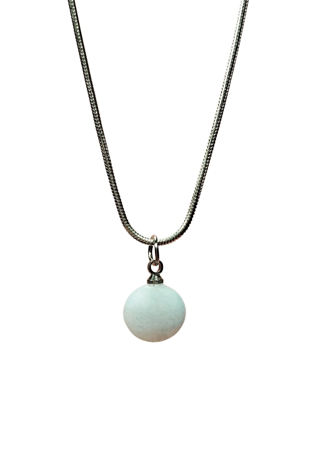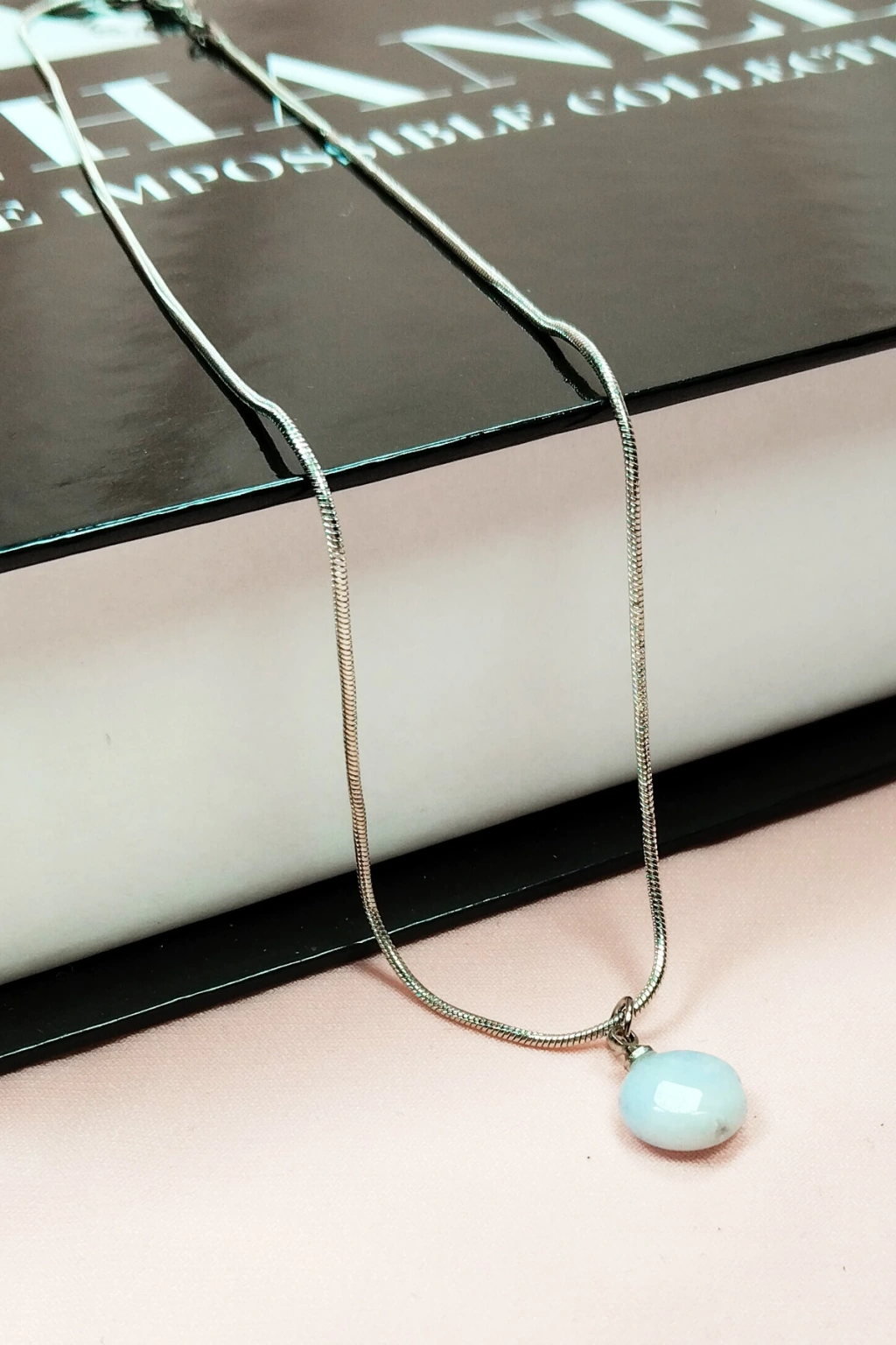 Akuamarin Doğal Taşı Zincirli El Yapımı Kolye Uç: 3 cm Zincir: 20 cm Kutulu