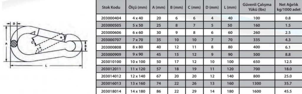 Güvenlik, taşıma ve montaj gibi birçok uygulamada tercih edilen karabina, sağlam yapısı ve işlevselliği ile dikkat çeker.