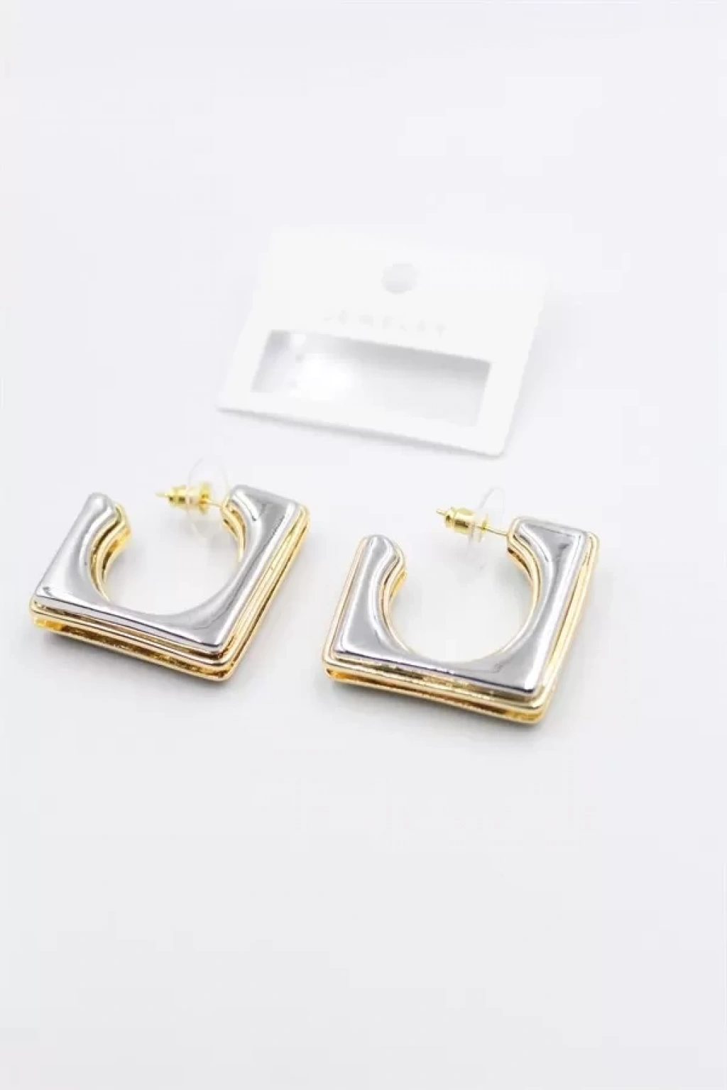 Mey İthalat® Pirinç Gümüş Renk Üçlü Görünüm Kadın Küpe