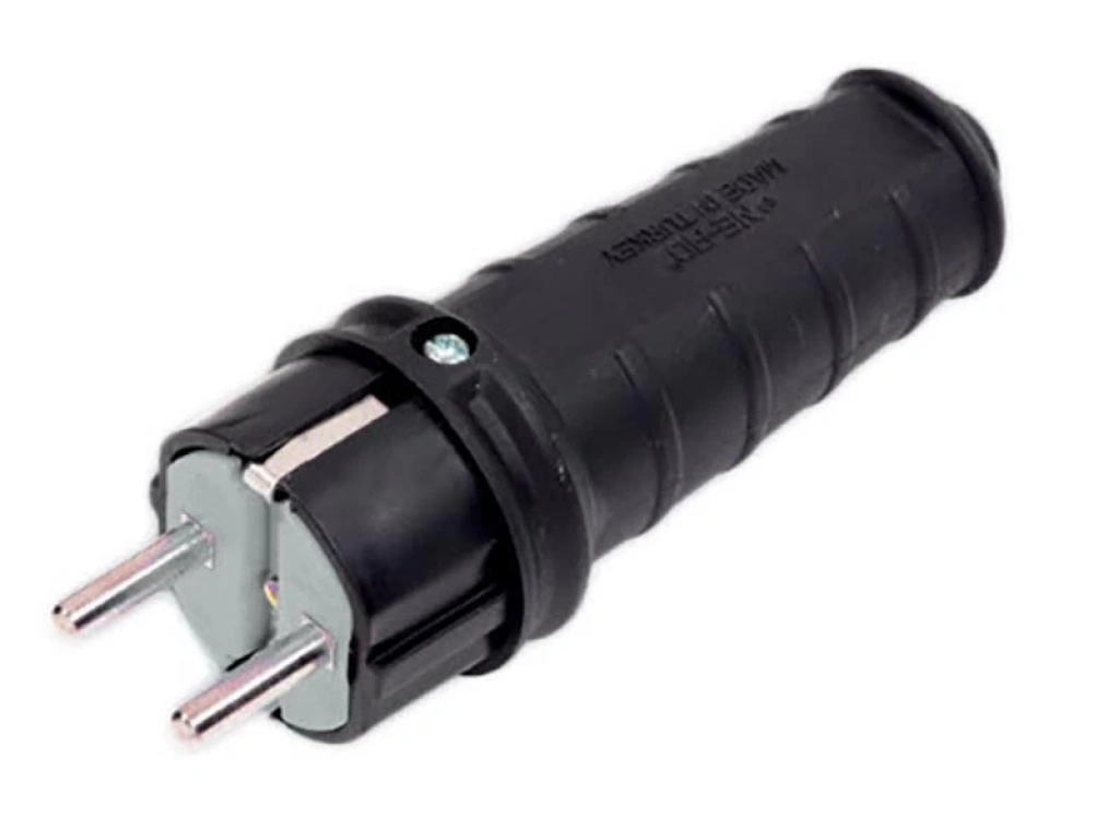 Monofaze kauçuk fişler ev tipi fişlerin yanı sıra biraz daha profesyonel ve biraz daha sağlam ürünlerdir. Dişi priz ile birleştiğinde prizdeki elektrik akımını aktarma görevini görür.