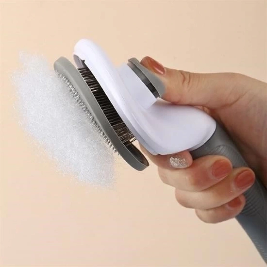 Kedi Köpek Tüy Toplayıcı düğmeli tasarımıyla kendini temizleme özelliğine sahiptir, tüyleri pratik bir şekilde alarak tarağı hızlı ve kolay bir şekilde temizler