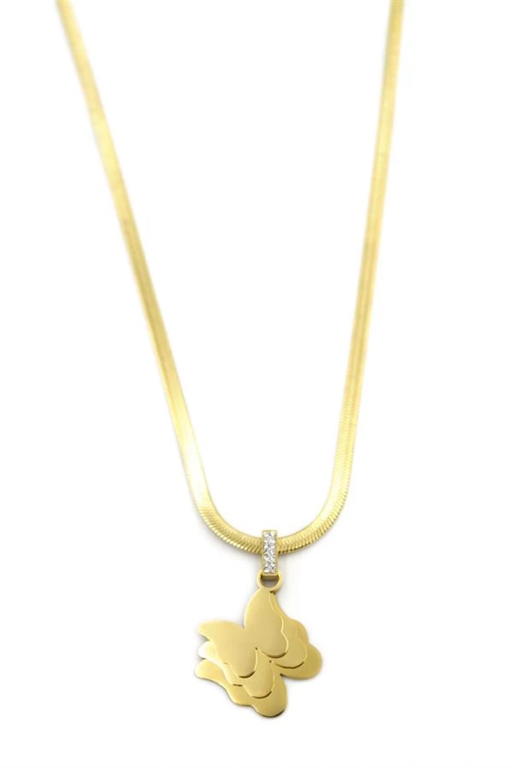BFS 316L Çelik Gold Renk 2'Li Simli Kelebek Model Kadın Kolye